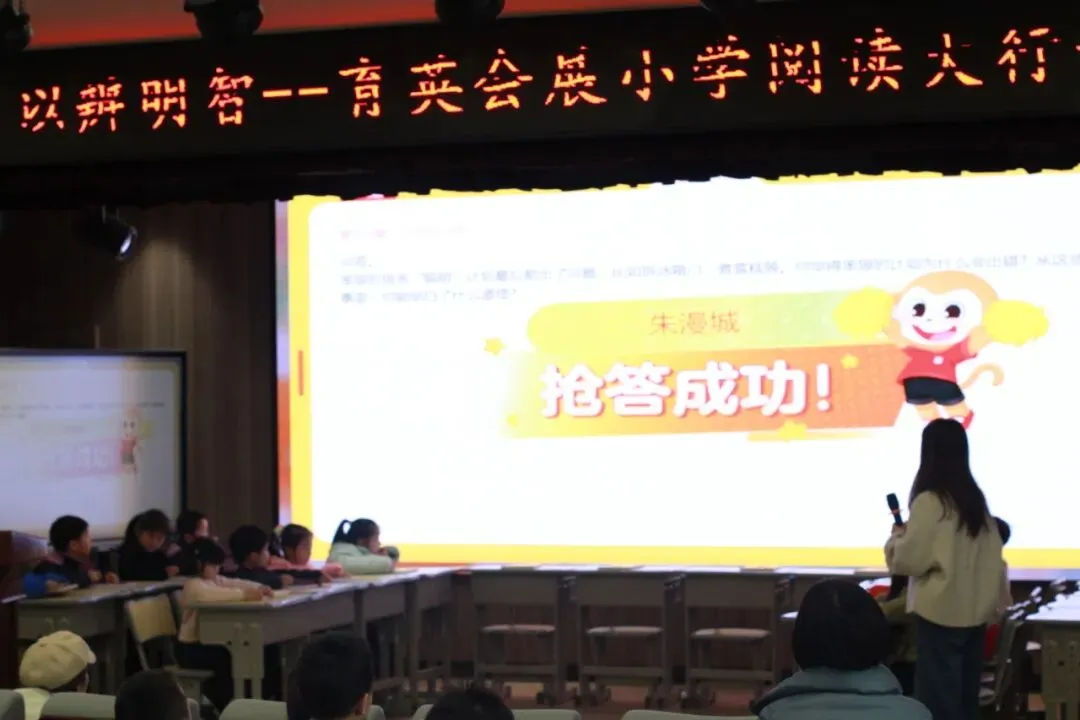 最具亮点的“同伴助力”环节,抢到答题权的选手主动邀请同班同学共同作答,在协作中传递知识、凝聚力量,充分展现了育英会展小学学子团结互助的精神风貌。赛场上,选手们时而凝神思索,时而自信应答,用灵动的思维与丰富的积累,诠释着阅读带来的成长与蜕变。