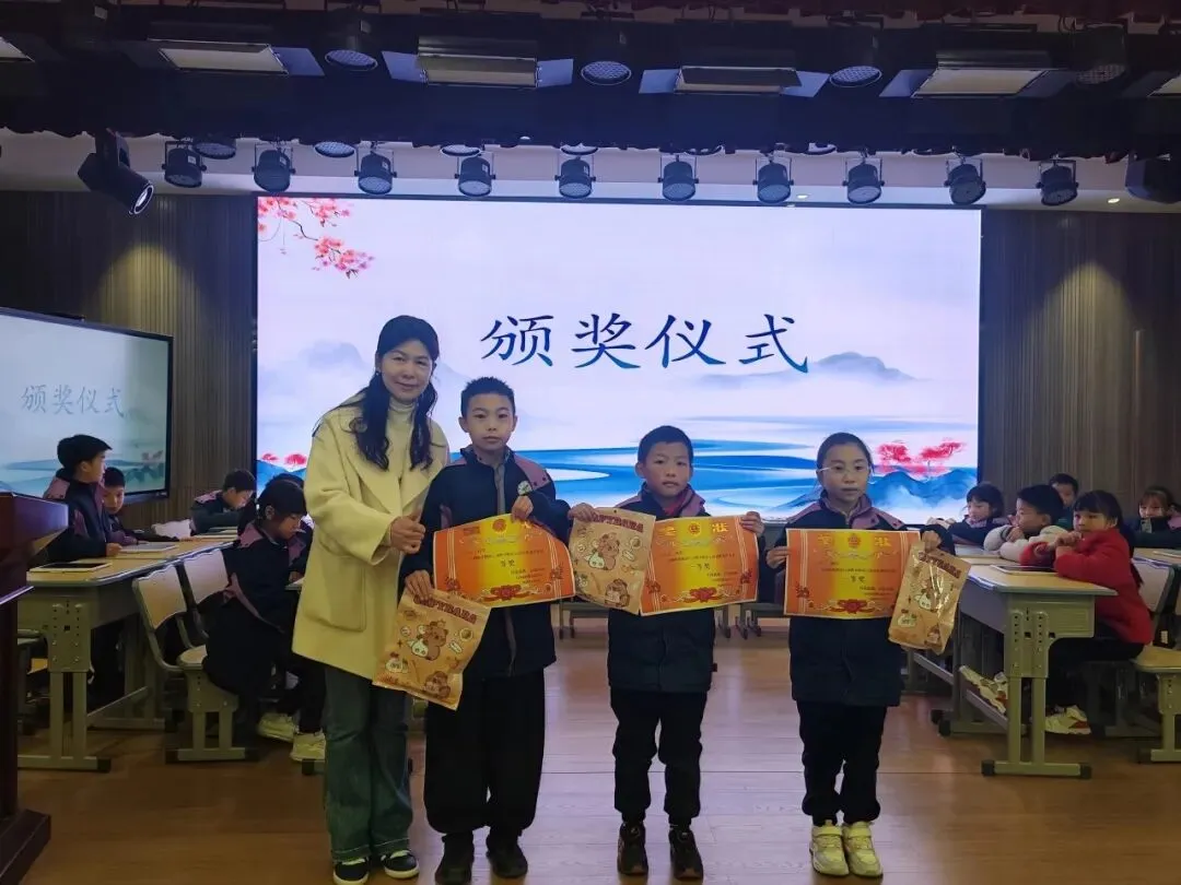 经过多轮激烈角逐,竞赛最终评选出一、二、三等奖若干名。杨柳校长为获奖选手颁发奖状与奖品,鼓励孩子们将阅读作为终身的习惯,培养独立思考能力。获奖选手们手捧荣誉,笑容灿烂,这份喜悦既源于竞技的胜利,更来自日常阅读积累的底气。