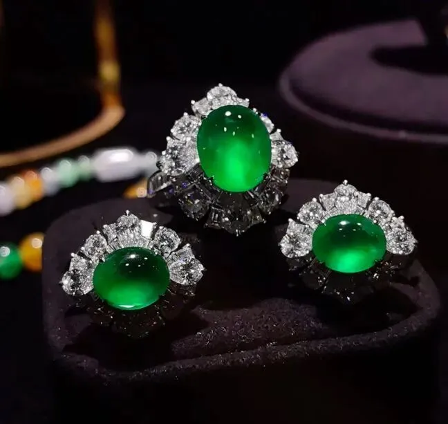 展会上有个蛋面戒指,绿得发光,女孩子看见了眼睛都直了。那个成色和水头,放在古代妥妥的贡品级别。