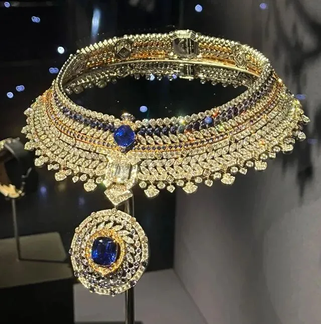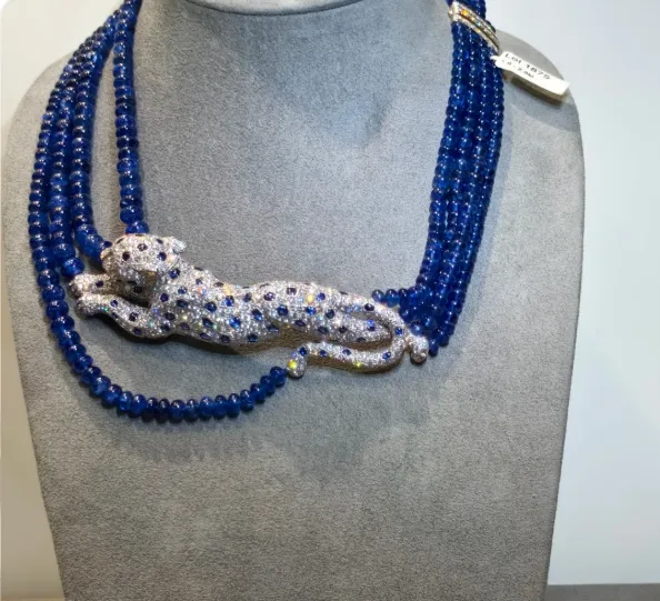 还有种复古款的蓝宝石链子,设计感很像古埃及王后戴的那种风格。虽说和我们平时的审美不太一样,可那宝石确实漂亮得没话说。有时候美这个事不分古今中外,好东西就是好东西。