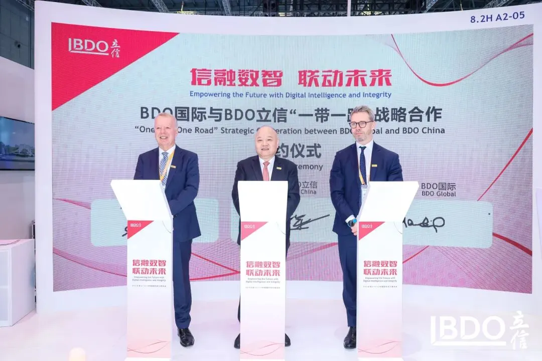 进博会上,立信与BDO国际举行“一带一路”战略合作签约仪式,朱建弟与BDO国际副主席Martin van Roekel、BDO国际首席战略运营官Trond Morten Lindberg共同参与签约仪式,此举标志着立信与全球合作伙伴的深度协作再上新台阶。