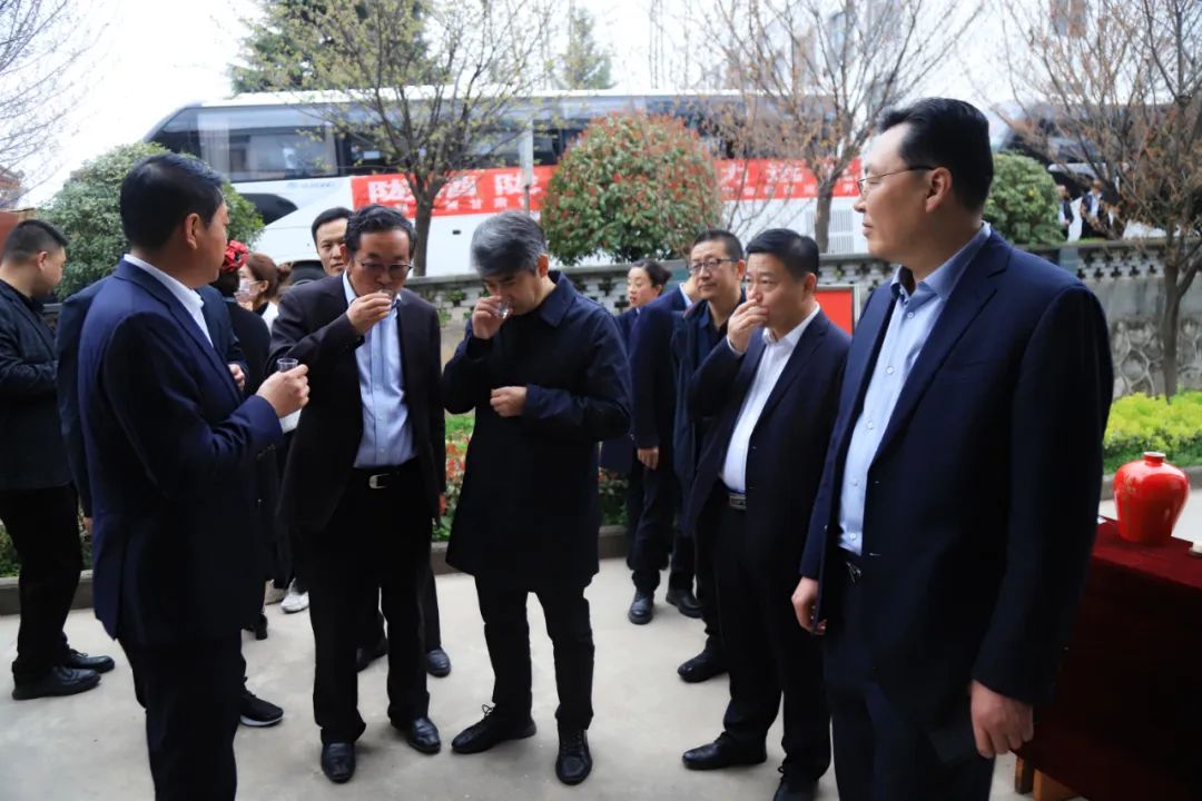 以甘肃省经济合作中心二级巡视员陈浦,甘肃省酒类流通产业促进中心副主任严文辉,中国酒类流通协会秘书长、云酒传媒总裁秦书尧,甘肃酒业协会会长、甘肃义顺供应链管理集团股份有限公司董事长张秉庆为代表的酒界精英于4月1日齐聚陇南成县,召开以“陇酒陇商 聚力远航”为主题的甘肃省酒业协会三届二次理事会议。4月1日下午,参加会议的代表与嘉宾130余人来到甘肃红川酒业有限责任公司参观考察,公司副董事长张永峰、总经理修卫华及相关领导全程陪同。代表团先后参观了公司包装车间、五号酿酒车间、吨坛库、年产1.2万吨纯粮原浆白酒建设项目现场,总经理修卫华向参观团简要介绍了公司目前的生产经营情况、红川酒的酿造技艺、产品结构以及未来发展规划等,重点对公司年产1.2万吨纯粮原浆白酒建设项目概况进行详细的介绍。代表团通过听取汇报,实地参观等方式,了解了红川酒从原粮、制曲、白酒生产、白酒存储、灌装、包装等一系列过程,并品尝了红川原浆酒及各种陈酿美酒,纯粮美酒优质的口感让他们赞不绝口,代表团与嘉宾对红川酒浓厚的文化底蕴和红川酒业多年来始终坚持纯粮酿造的高贵品格赞叹不已。