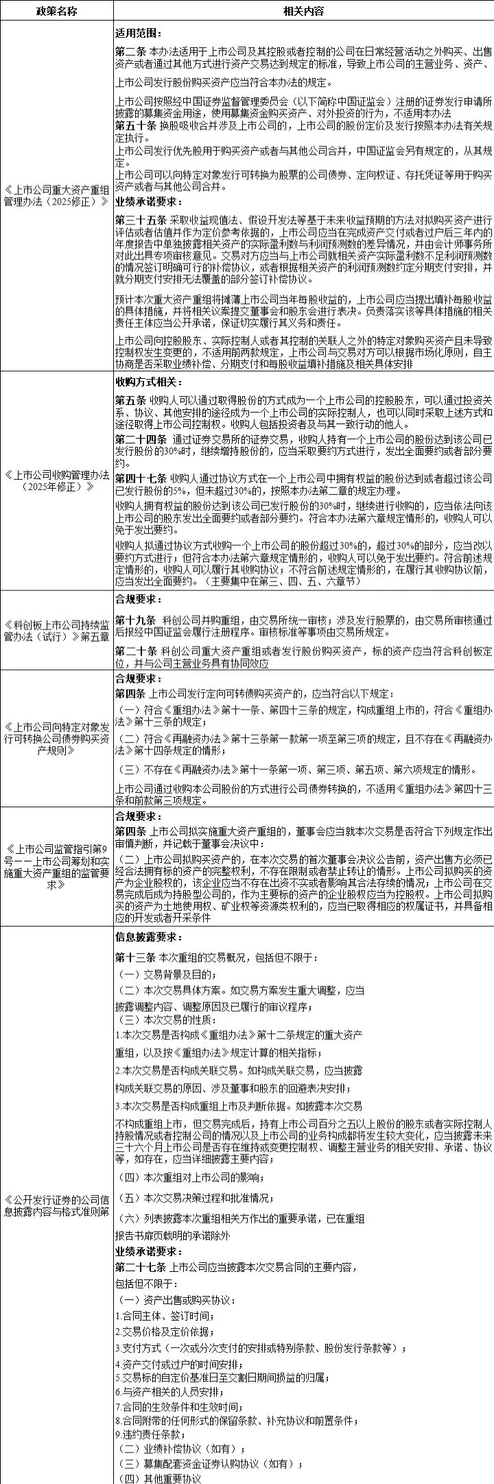 同时,证监会针对上市公司并购重组制定了相关政策规章,具体如下: