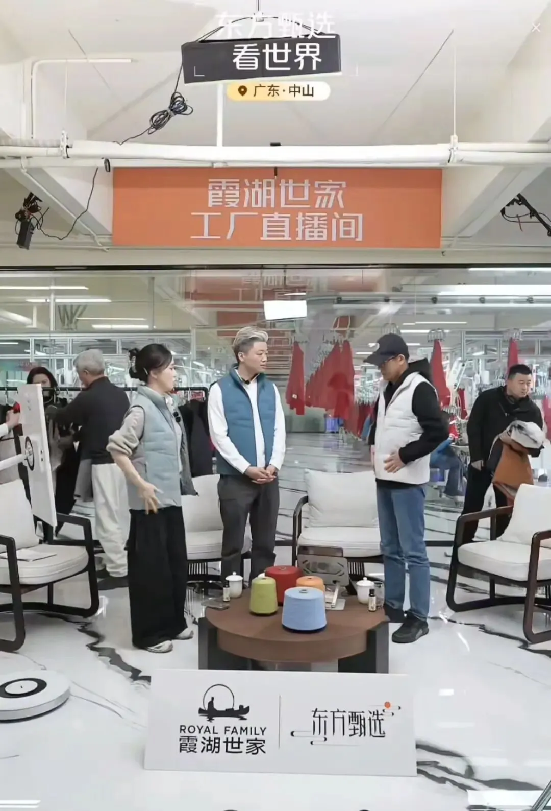 直播当日,俞敏洪团队首站便走进沙溪镇龙头企业——中山市霞湖世家服饰有限公司,深入智能制造工业园的生产一线。镜头下,全链条数字化生产场景清晰呈现,从面料研发到成衣制造的智能化流程一目了然,让网友直观感受沙溪服装产业“智改数转”的硬核实力。俞敏洪更化身“时装模特”,身着沙溪本土设计的服装亮相镜头,生动展现沙溪服装的优良品质与时尚设计,直播间互动热度持续攀升。