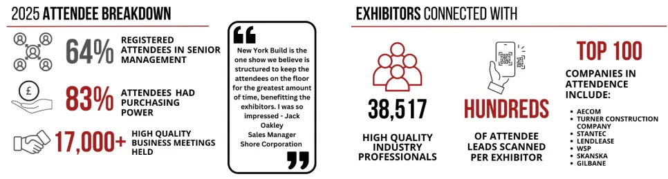 纽约建材展(New York Build)是美国具有较好市场的大型建材展,也是该地区展示纽约及美国中西部地区建筑项目和机会的大型建筑展。它致力于探索纽约商业和非商业建筑领域的机会,为参展商和客户提供一个交流的平台。