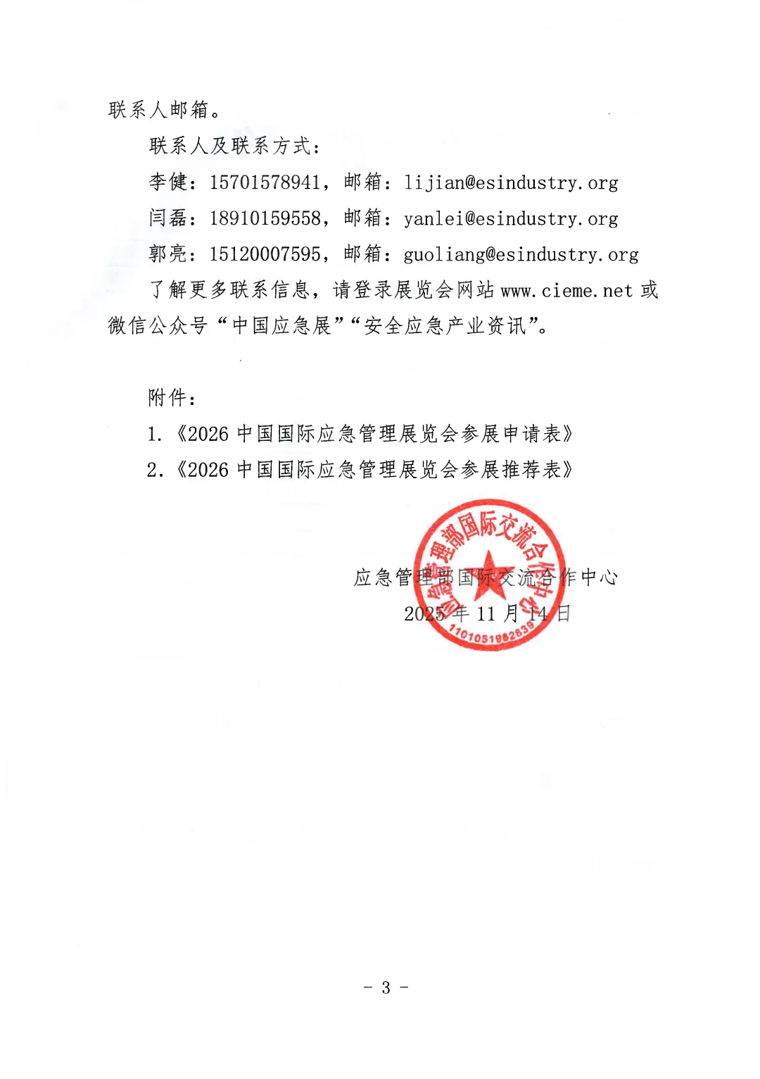 发 布:中国国际应急管理展览会组委会