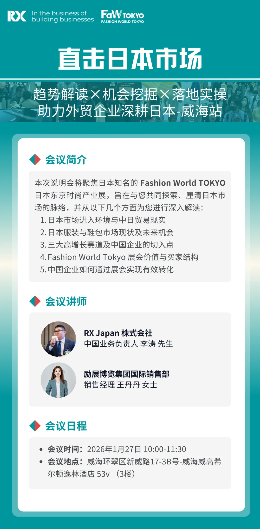 威海站说明会-直击日本市场|东京时尚产业展2026春Fashiin World Tokyo趋势解读x机会挖掘x落地实操-助力外贸企业深耕日本市场