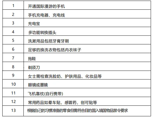 出发前请检查带上必备物品 ,最重要的是护照、身份证;其次如银行卡 ,手机 ,充电宝等; 日本天气多雨 ,气温和上海接近;请注意带折叠伞。必备药品如感冒通、 昏晕宁、黄连素、创可贴等 ,如果您有需要长期服用的药物 ,请随身携带;