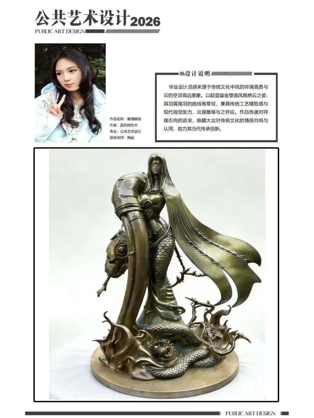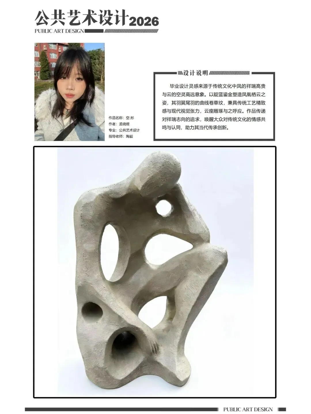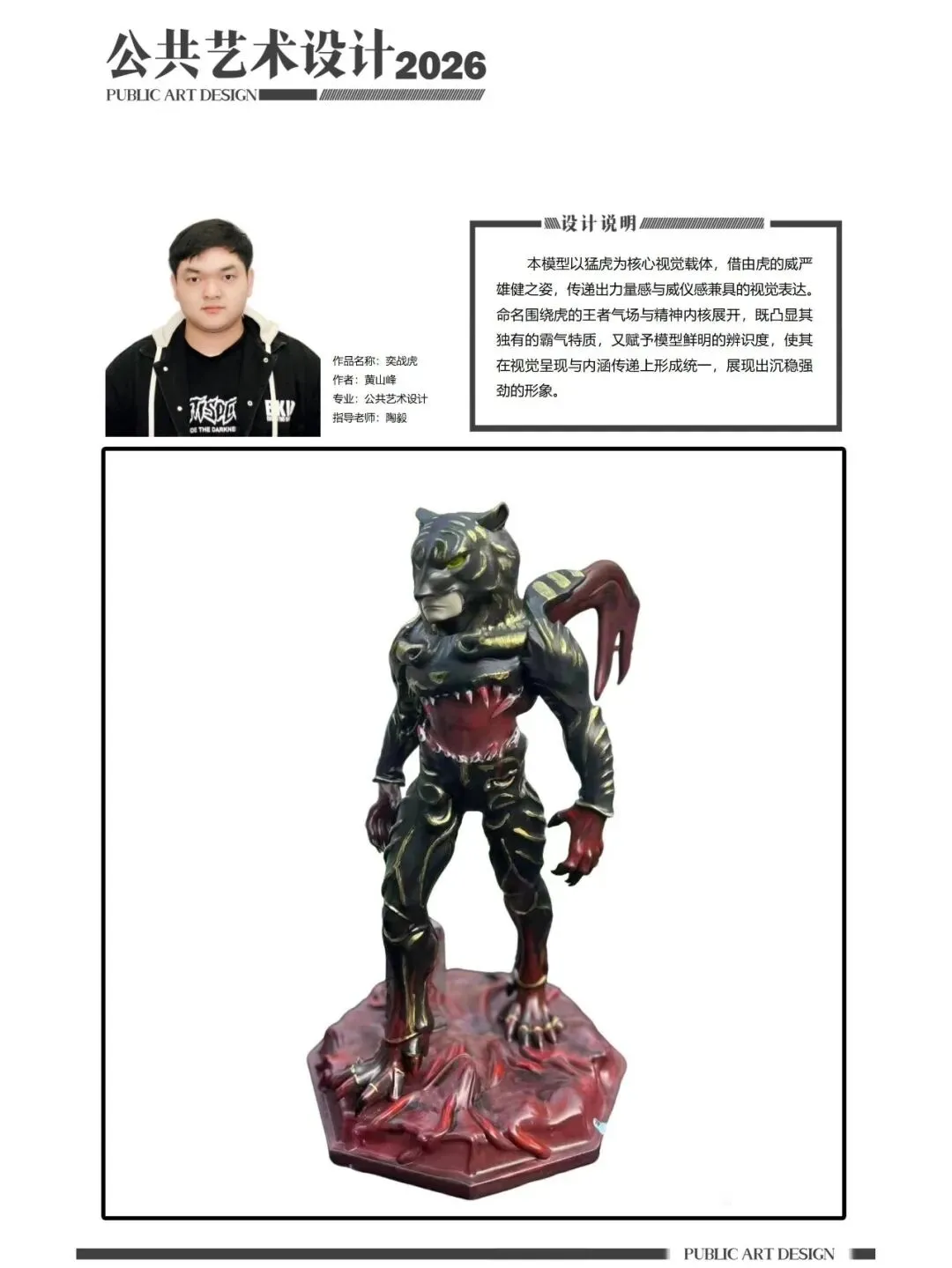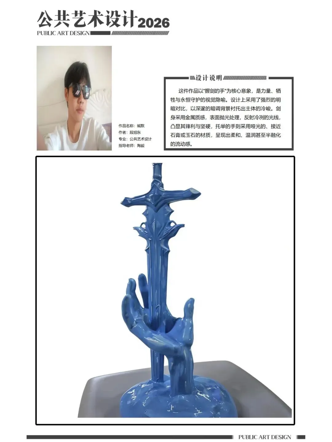公共艺术设计专业展览以"守正创新"为主题,系统呈现了学子在数字技术与传统手工艺融合创新方面的深度探索。展览聚焦两大创作方向:一是传统雕塑的数字化转型,学生运用三维建模与3D打印技术,将巴蜀文化符号转化为兼具传统美学内核与现代科技语言的数字雕塑作品;二是传统陶瓷技艺的活化传承,通过对拉坯、施釉、烧制等传统工艺的深耕,将地域文化元素融入当代生活器用,展现手艺的温度与活化潜力。两大板块形成"守正创新"的对话格局,体现了专业"技艺并重、古今相融"的育人理念,培养学生既掌握前沿数字技术,又注重传统艺术根基的培育,使其成为能够以多元艺术语言回应文化传承与当代空间需求的技能型人才。