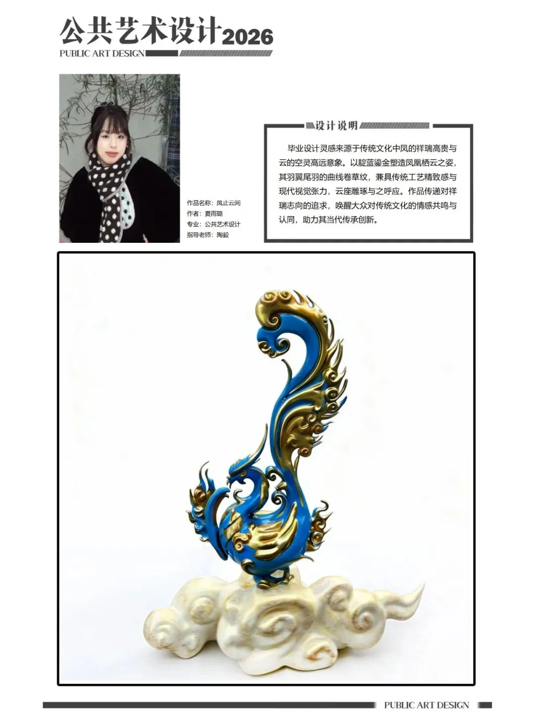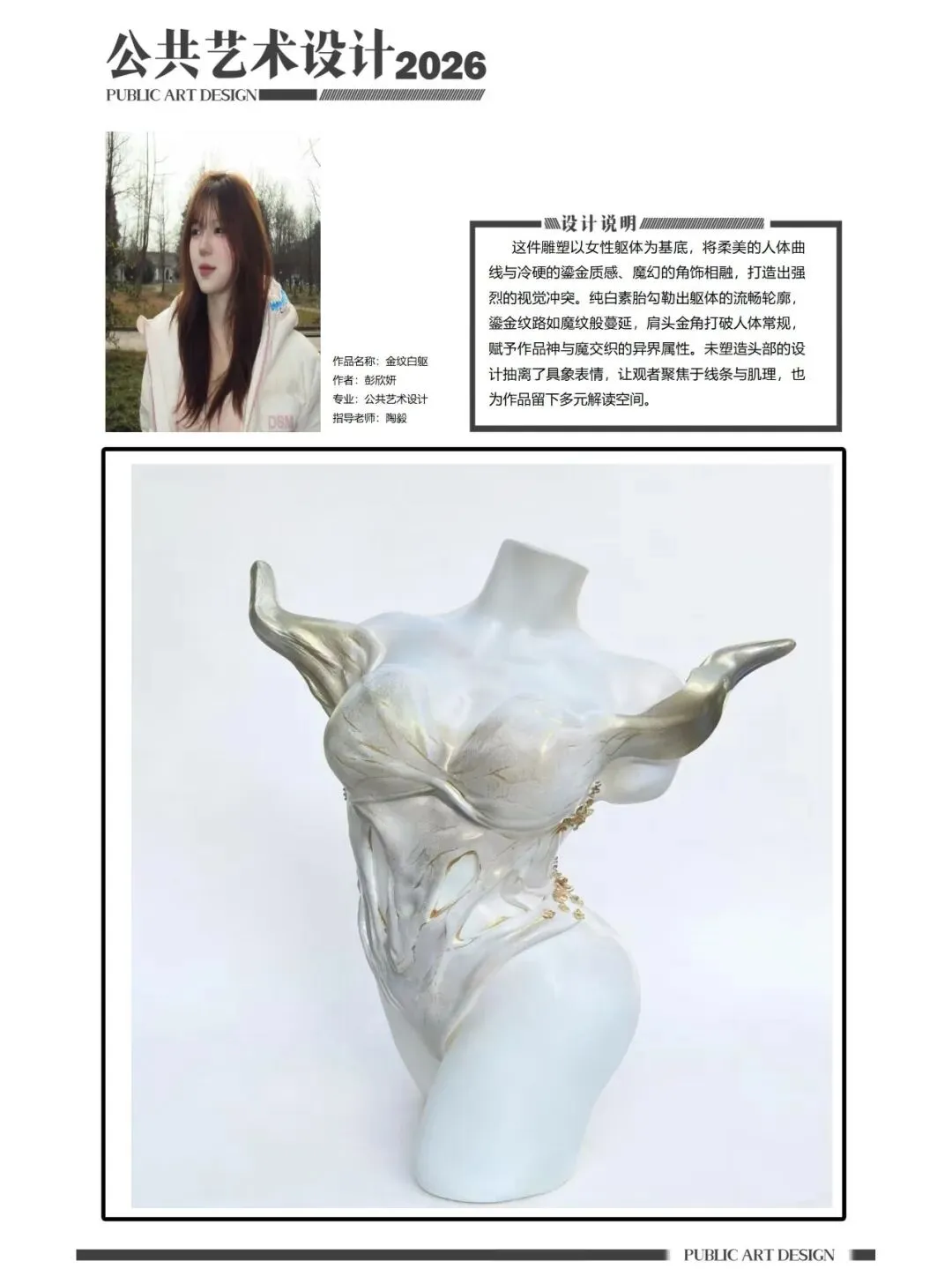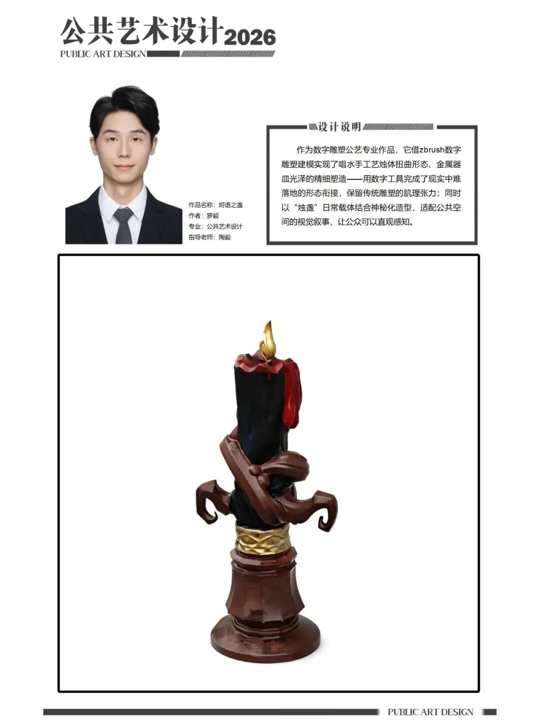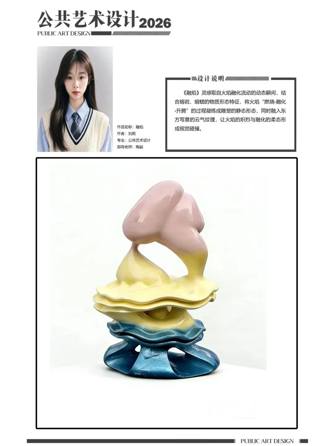公共艺术设计专业展览以"守正创新"为主题,系统呈现了学子在数字技术与传统手工艺融合创新方面的深度探索。展览聚焦两大创作方向:一是传统雕塑的数字化转型,学生运用三维建模与3D打印技术,将巴蜀文化符号转化为兼具传统美学内核与现代科技语言的数字雕塑作品;二是传统陶瓷技艺的活化传承,通过对拉坯、施釉、烧制等传统工艺的深耕,将地域文化元素融入当代生活器用,展现手艺的温度与活化潜力。两大板块形成"守正创新"的对话格局,体现了专业"技艺并重、古今相融"的育人理念,培养学生既掌握前沿数字技术,又注重传统艺术根基的培育,使其成为能够以多元艺术语言回应文化传承与当代空间需求的技能型人才。