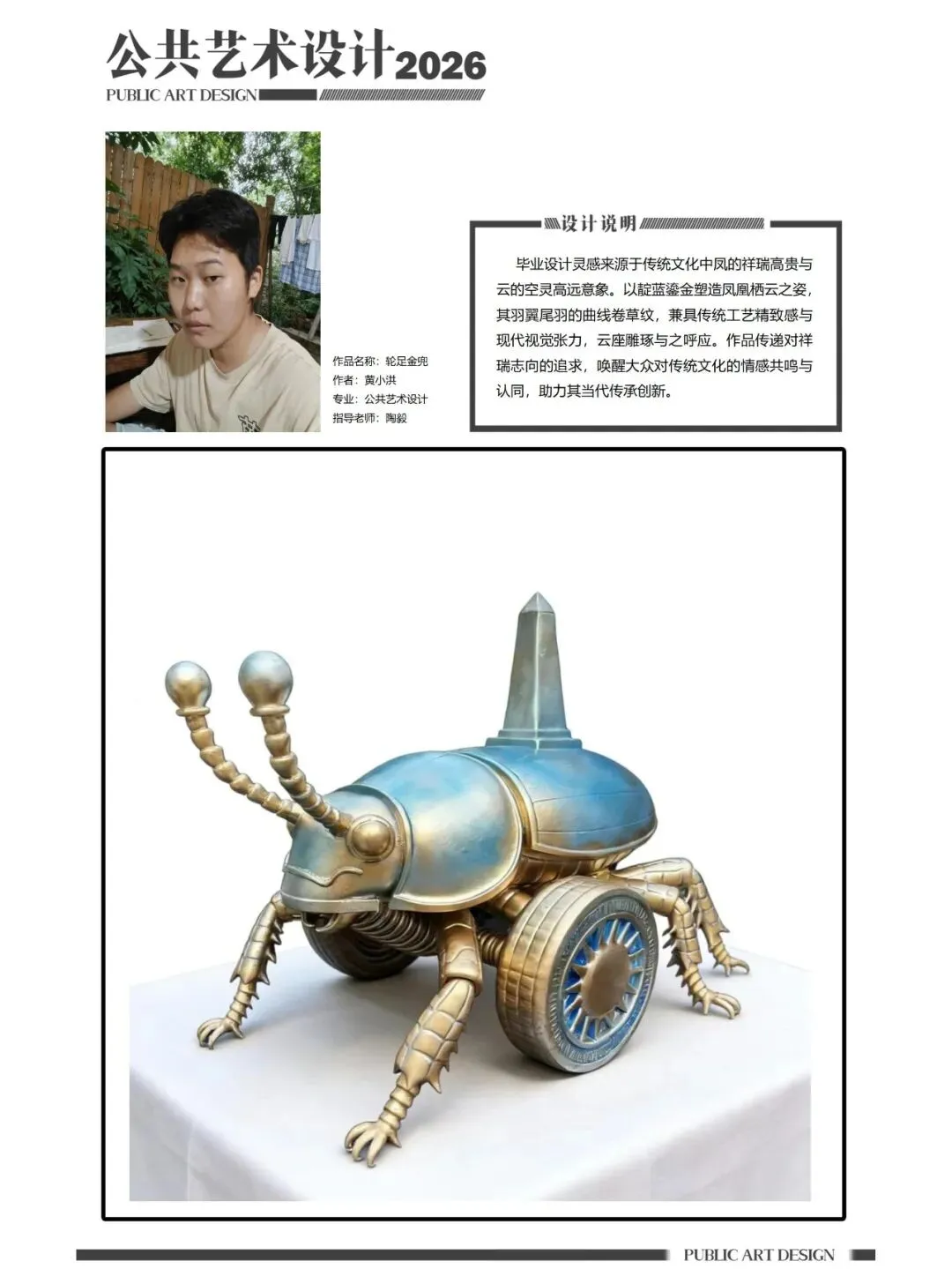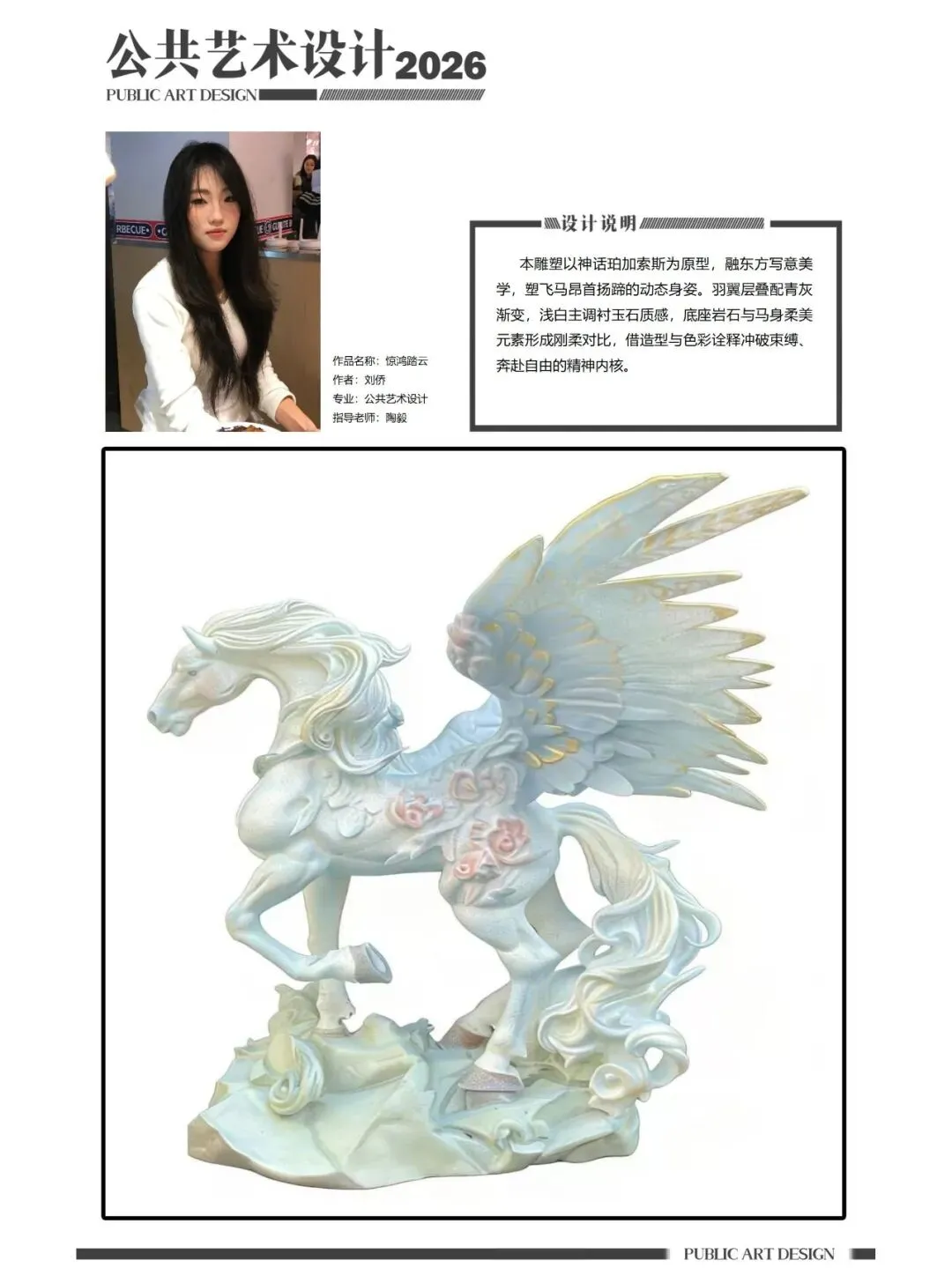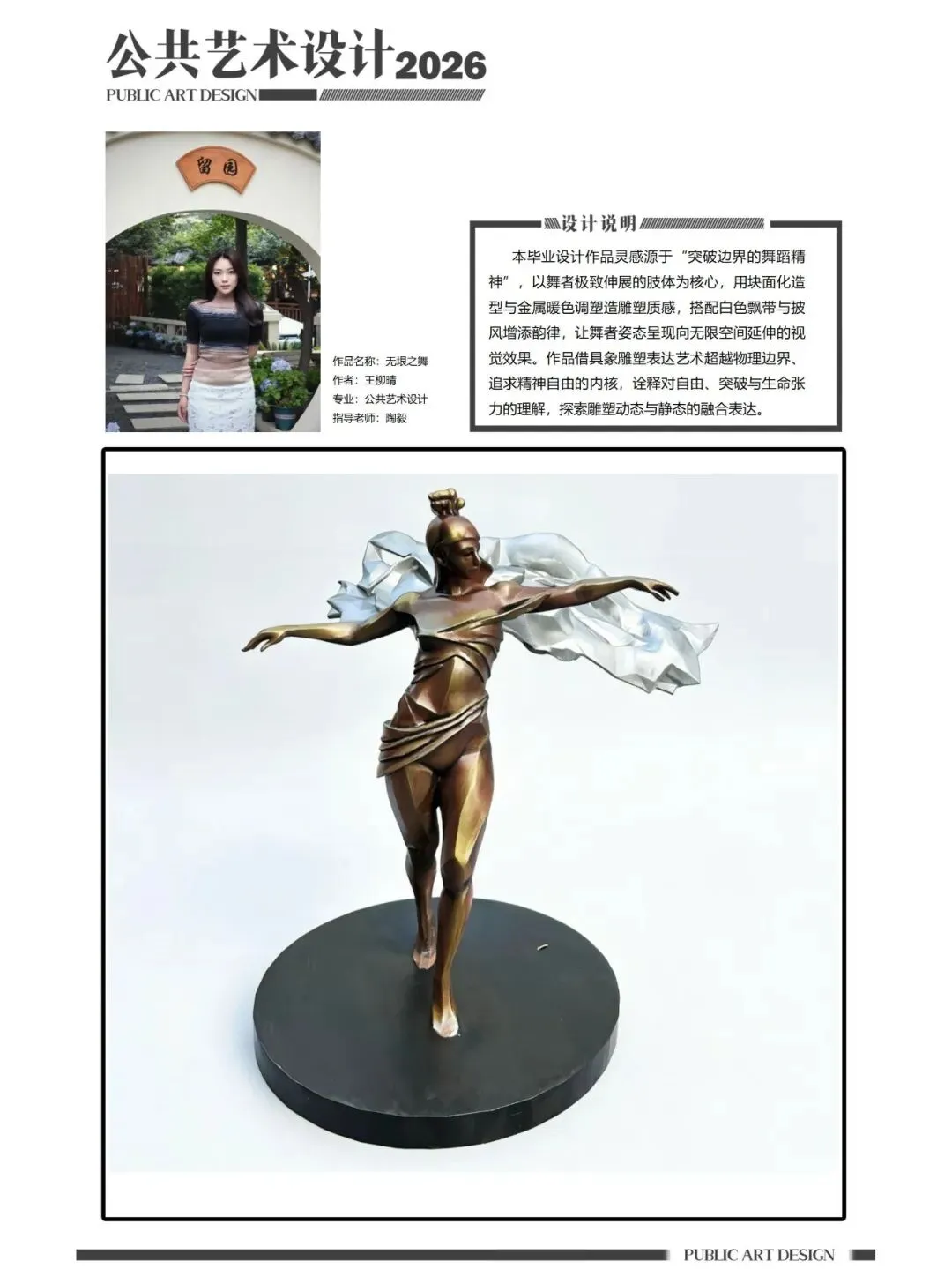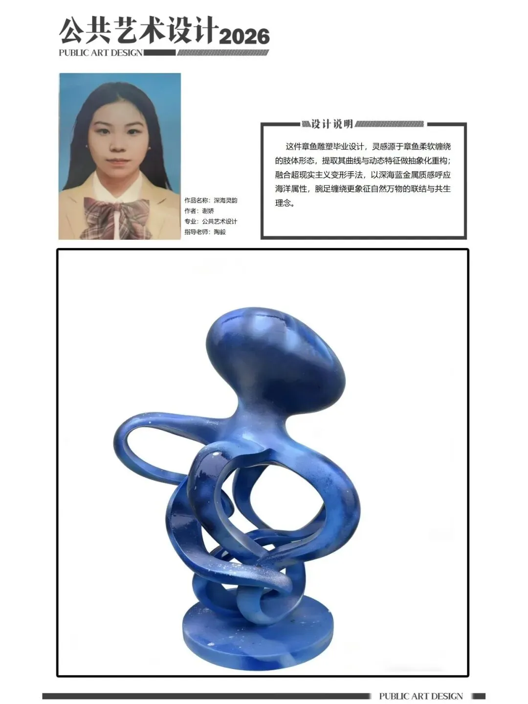 公共艺术设计专业展览以"守正创新"为主题,系统呈现了学子在数字技术与传统手工艺融合创新方面的深度探索。展览聚焦两大创作方向:一是传统雕塑的数字化转型,学生运用三维建模与3D打印技术,将巴蜀文化符号转化为兼具传统美学内核与现代科技语言的数字雕塑作品;二是传统陶瓷技艺的活化传承,通过对拉坯、施釉、烧制等传统工艺的深耕,将地域文化元素融入当代生活器用,展现手艺的温度与活化潜力。两大板块形成"守正创新"的对话格局,体现了专业"技艺并重、古今相融"的育人理念,培养学生既掌握前沿数字技术,又注重传统艺术根基的培育,使其成为能够以多元艺术语言回应文化传承与当代空间需求的技能型人才。