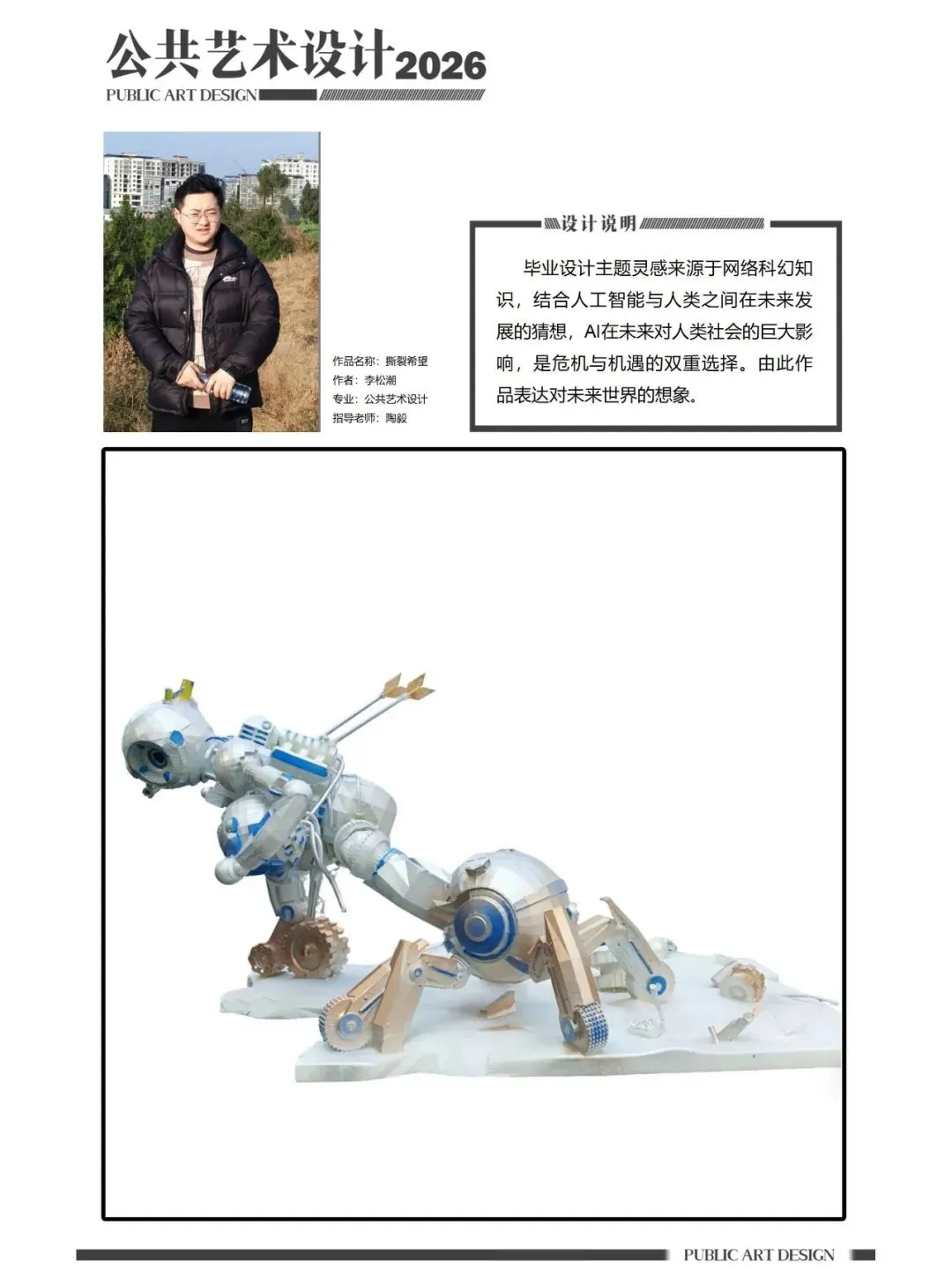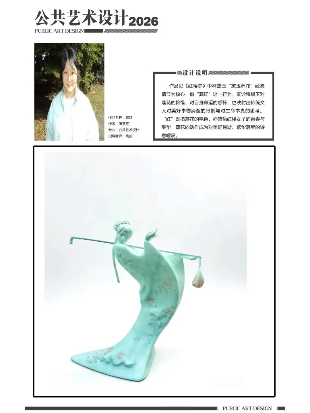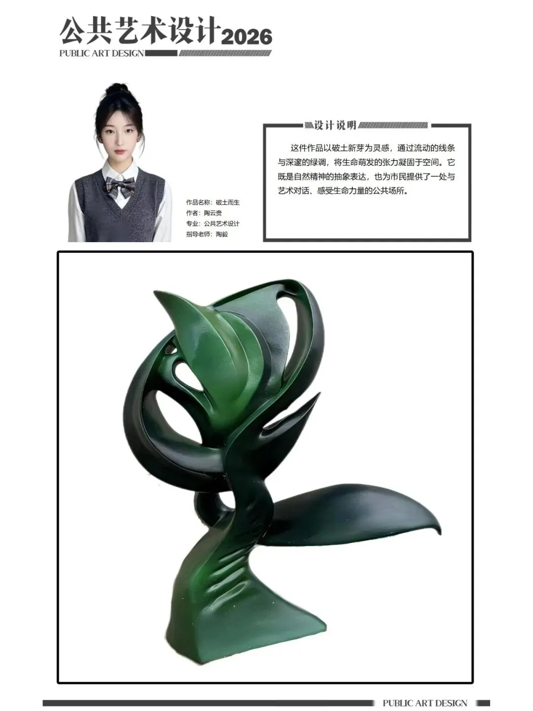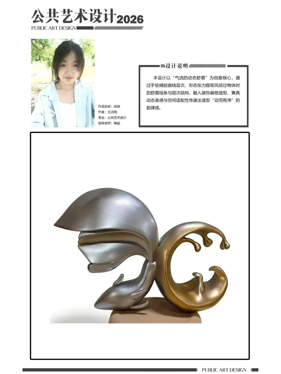 公共艺术设计专业展览以"守正创新"为主题,系统呈现了学子在数字技术与传统手工艺融合创新方面的深度探索。展览聚焦两大创作方向:一是传统雕塑的数字化转型,学生运用三维建模与3D打印技术,将巴蜀文化符号转化为兼具传统美学内核与现代科技语言的数字雕塑作品;二是传统陶瓷技艺的活化传承,通过对拉坯、施釉、烧制等传统工艺的深耕,将地域文化元素融入当代生活器用,展现手艺的温度与活化潜力。两大板块形成"守正创新"的对话格局,体现了专业"技艺并重、古今相融"的育人理念,培养学生既掌握前沿数字技术,又注重传统艺术根基的培育,使其成为能够以多元艺术语言回应文化传承与当代空间需求的技能型人才。