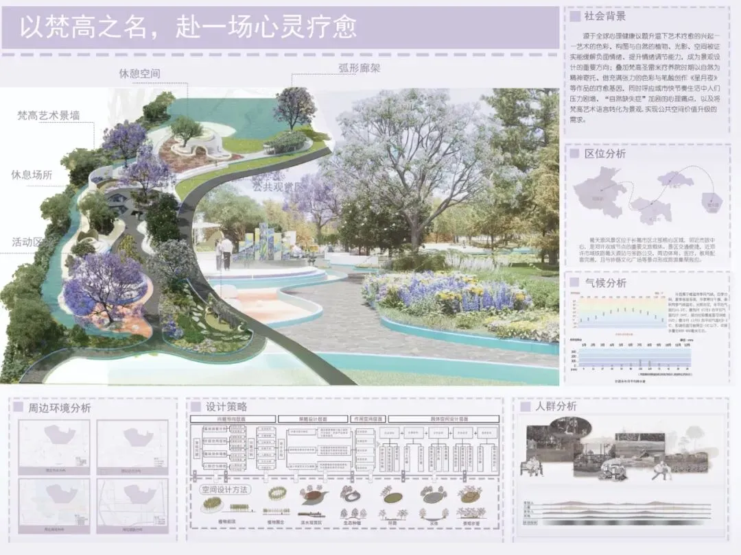 本课程是环境设计专业的专业核心课程。景观艺术设计作为一门协调“人—环境—艺术”关系的综合性学科,成为传承地域文化、激发社区活力、提升居民生活幸福感的空间营造手段。本次课程作业旨在引导我们作为未来的环境艺术设计师,带着创新思维和社会责任感,探索景观艺术如何成为城市品质提升的“催化剂”。