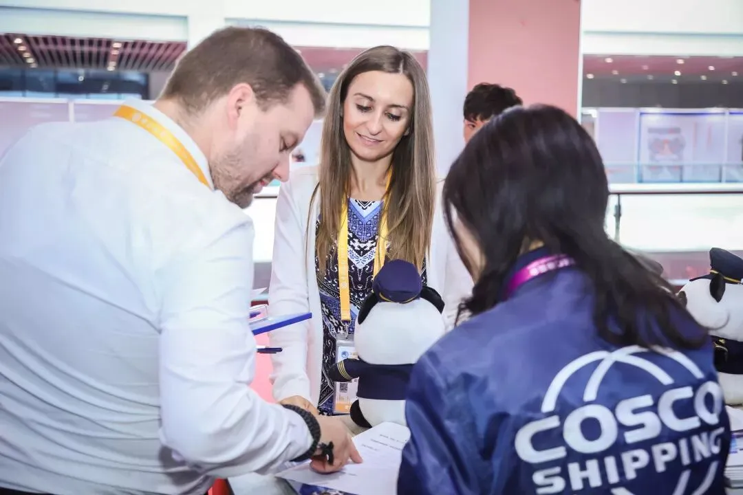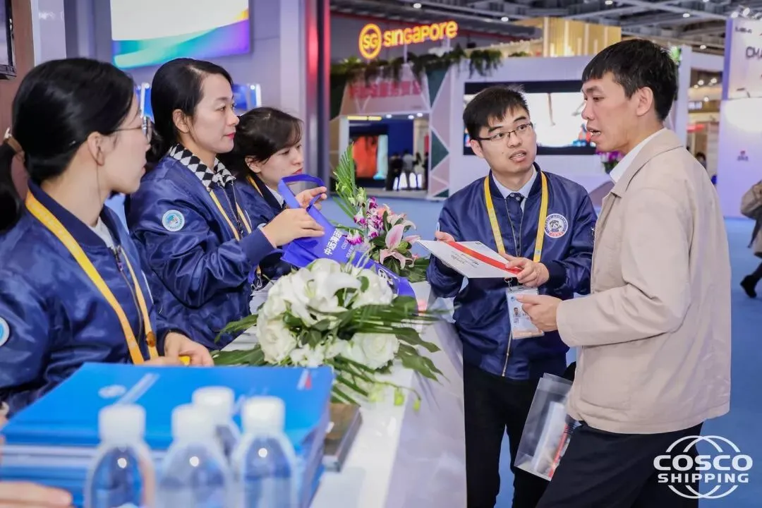 在6天的盛会里,中远海运志愿者分部相对较为集中的服务区域是服务贸易展馆,主要负责业务咨询、展台讲解等。该展区涵盖商贸物流服务、金融及咨询服务、文化及旅游服务等五大板块,其中有42家是由中远海运集团邀请参展的企业,它们悉数亮相于“一带一路”互联互通展区。来自秘鲁的参展商赞美了这支专业的志愿者团队,他们表示,在参展期间收获了很多有质量的咨询问答,在海运年会上听到了前沿的行业分析与报告,更在展期的供需对接会上结识了诸多潜在客户。如果说志愿者服务是人与人之间温暖链接的有效载体,那么像中远海运这样的专业化志愿者服务是让服务效益最大化的重要手段。