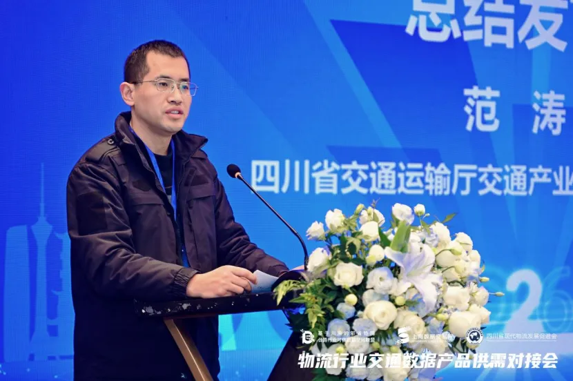 四川省交通运输厅交通产业处筹备组副组长范涛对本次活动凝聚共识、启迪思路、拓展合作给予肯定,指出未来数据赋能物流主要体现在控成本、提效率、强韧性、创价值四个方面,鼓励相关企业坚持以市场为导向、以问题为驱动、以应用为核心,携手推动现代物流产业链高质量发展。