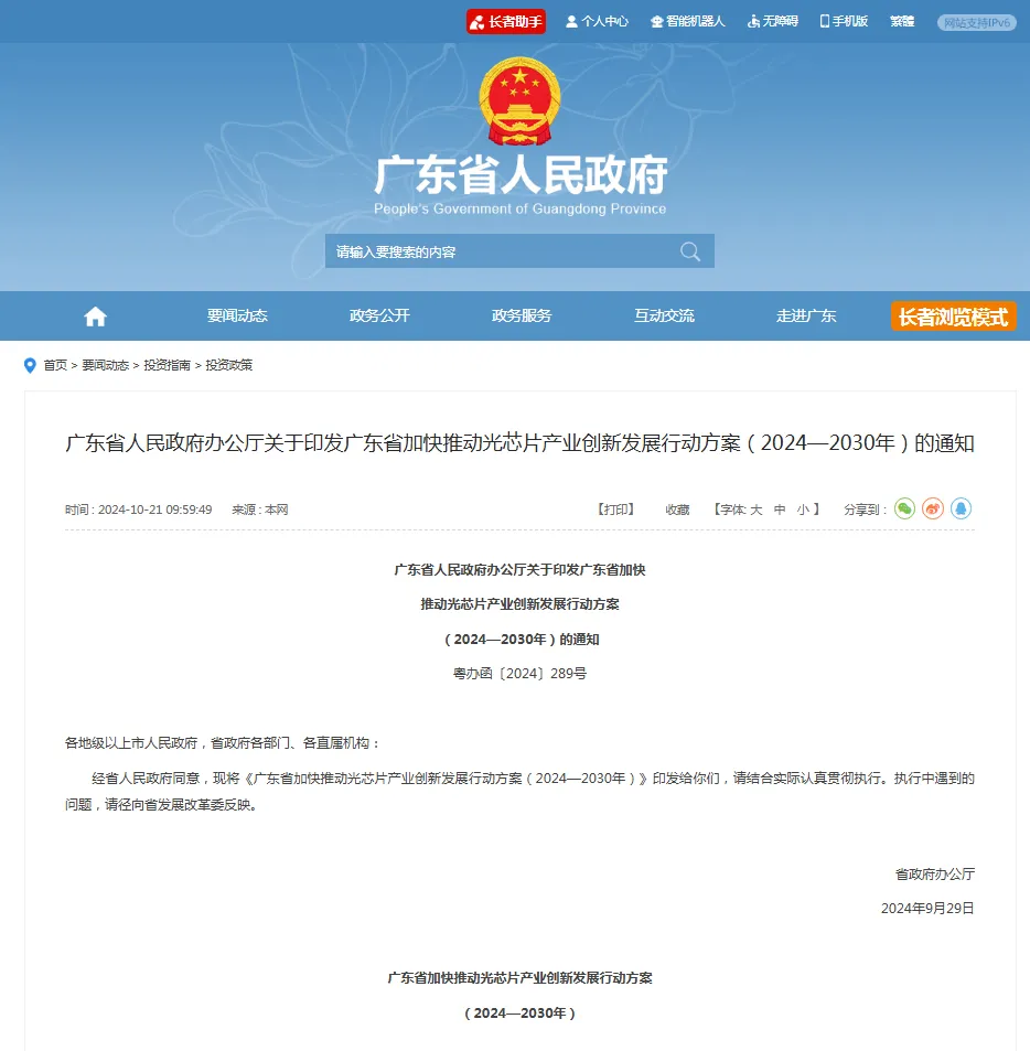 以半导体为例,《广东省加快推动光芯片产业创新发展行动方案(2024—2030年)》明确提出,力争到2030年取得10项以上光芯片领域关键核心技术突破,培育10家以上具有国际竞争力的一流领军企业,建设10个左右国家和省级创新平台,培育形成新的千亿级产业集群,建设成为具有全球影响力的光芯片产业创新高地。这一政策对广东及全国光电子与半导体产业具有战略性引领作用。