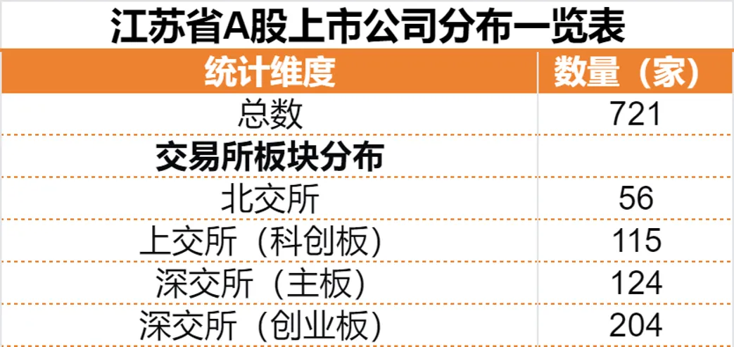 此外,江苏在北交所的56家上市公司数量同样全国第一,苏北地区的化工、机械制造等传统产业中小企业,通过技术改造与模式创新登陆北交所,实现了“老树发新芽”的资本化升级;深交所创业板204家、深交所主板124家的布局,则反映出苏南地区创新创业企业的发展活力。