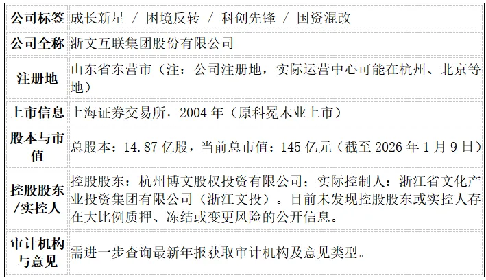 综合对浙文互联公司画像、发展史、业务模式、行业分析、财务体检、核心驱动与风险预警以及估值与投资逻辑的探讨,我们对公司做出以下最终判断。