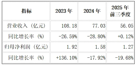 此外,公司在2025年第三季度报告中披露的财务数据也引发了市场讨论。尽管公司前三季度营业收入实现微增,但归母净利润和扣非净利润同比均出现较大幅度下滑,特别是扣除非经常性损益后的净利润仅为1869.48万元,同比下降78.62%。