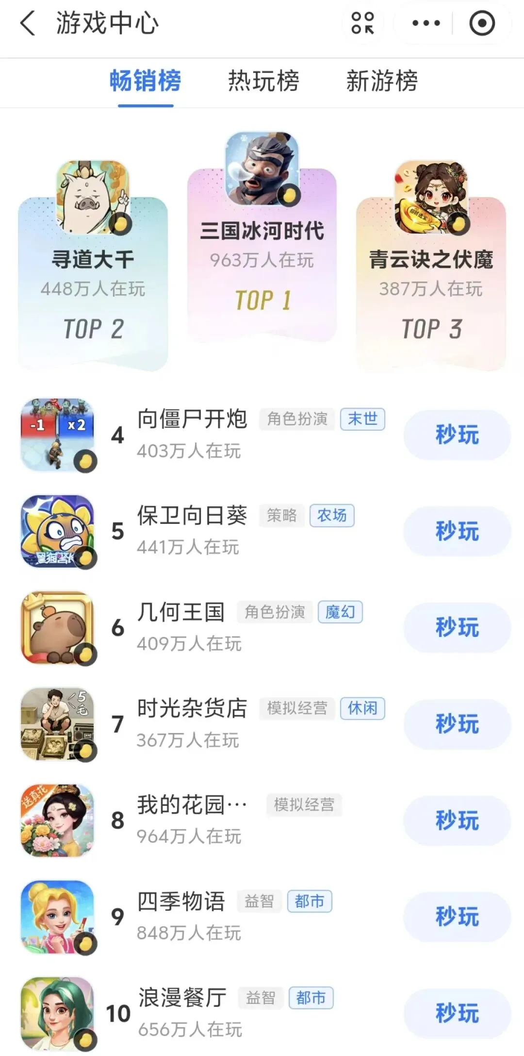 支付宝小游戏畅销榜