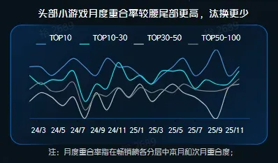 然而如今的市场风向似乎悄然转变了方向,大厂爆款的霸榜时间越来越长,以小博大的新故事却越来越少。从数据上来看,2025年国内小游戏市场收入535.35亿元、同比增速34.39%,依然是国内游戏市场中净增值最高的赛道,但其增速较前两年的爆发式增长已经有所放缓。
