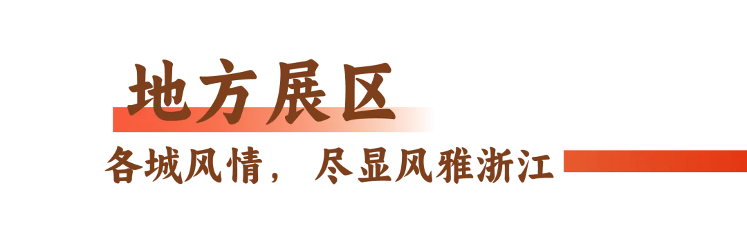 集中展示浙江省内各市、县(市、区)非遗保护成果,呈现地方非遗品牌、特色商品与创新产品,体现浙江非遗的多样性与地域特色。