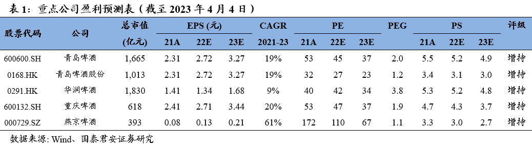 啤酒23Q1景气超预期,动销有望显著加速。根据渠道调研,我们预计23Q1啤酒行业销量或实现高单位数增长,其中青岛啤酒、燕京啤酒、华润啤酒等龙头公司表现有望更优,淡季不淡超预期。根据渠道调研,23Q1餐饮终端整体呈现复苏态势,尤其夜场及高档餐饮持续恢复,我们预计喜力、青岛纯生、燕京U8等次高档以上啤酒产品受益现饮渠道终端复苏、动销表现较好。随着二季度迎来啤酒消费旺季以及22年同期的低基数,我们预计啤酒动销有望继续显著加速。