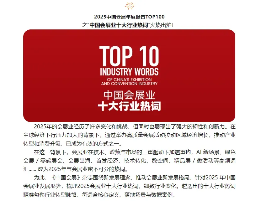 2025中国会展年度报告TOP100之“中国会展业十大行业热词”