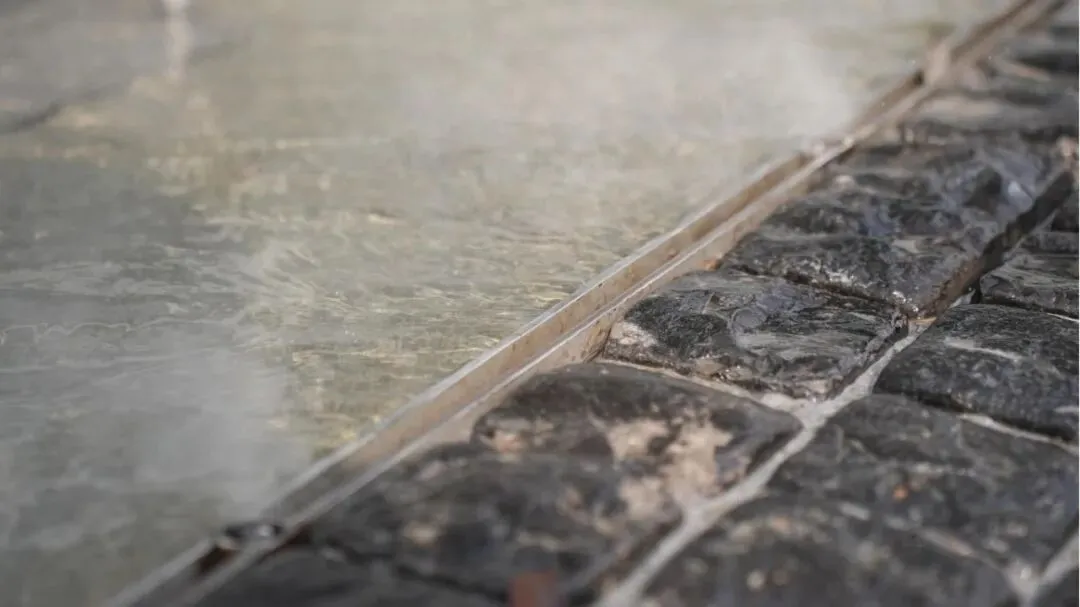 采用高品质定制弧形不锈钢线性排水系统替代传统突兀式雨水篦子,通过极简的线性语言消解排水设施的存在感,确保地面铺装的整体连贯性,完美诠释了现代景观工程中“隐形技术”与“显性美学”的辩证统一。