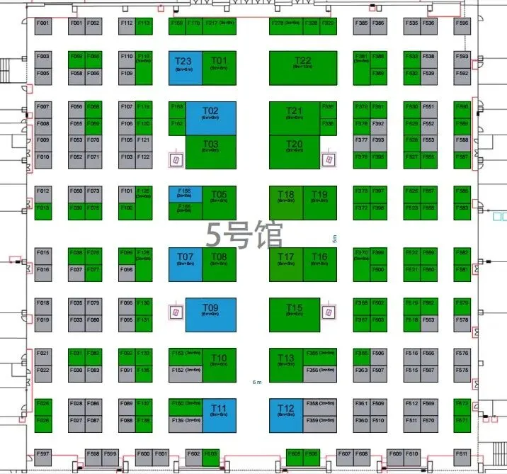 灰色是可选的展位,绿色是已定展位,蓝色是特装展位。宁波市磁性材料商会展位号 5号馆F529-F530。