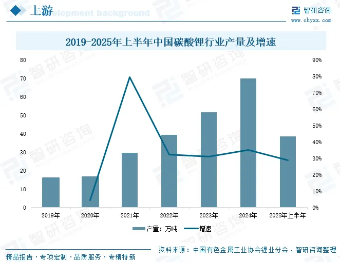 碳酸锂是制造钽酸锂单晶的重要原材料,主要用于提供锂源并参与晶体生长控制。近年来,我国碳酸锂行业产量持续增长,为钽酸锂单晶生产提供充足的原材料。数据显示,2024年中国碳酸锂产量达到70.1万吨,同比增长35.3%。2025年这一增长趋势延续,上半年国内总产量已达38.6万吨,同比增长29%。碳酸锂行业产量增长主要得益于下游新能源汽车、储能行业的发展,对碳酸锂的需求不断增加,进而推动行业产能扩张。预计未来在国家政策的推动下,碳酸锂产能将进一步提升,行业产量不断增加。