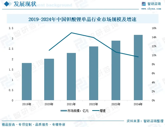钽酸锂单晶作为一种高性能功能材料,凭借其优异的压电、光电和热稳定性等特点,广泛应用于光通信、激光器件、医疗设备等高附加值领域。在光通信领域,钽酸锂单晶可以用于光纤通信中的频率转换和波长转换,提高光信号的传输效率;在激光器件方面,钽酸锂单晶广泛应用于半导体激光器、CO2激光器等激光器中,可用于脉冲调制、倍频、和和频等光学效应;在生物医学领域,钽酸锂单晶可以作为生物医学成像技术中的散射补偿器材料,用于提高图像的清晰度和分辨率。随着物联网、人工智能、大数据技术的快速发展,钽酸锂单晶行业市场规模持续扩大。数据显示,2024年中国钽酸锂单晶行业市场规模达到3.18亿元,同比上涨9.7%。