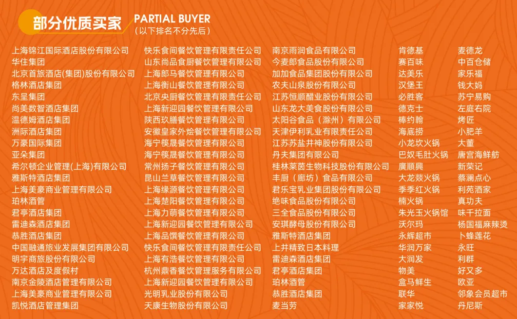 · 高峰论坛:超100名餐饮行业领袖莅临现场分享前瞻观点,涵盖餐饮、食材和预制菜等热点话题,共寻非凡创新亮点,洞察未来热点趋势。