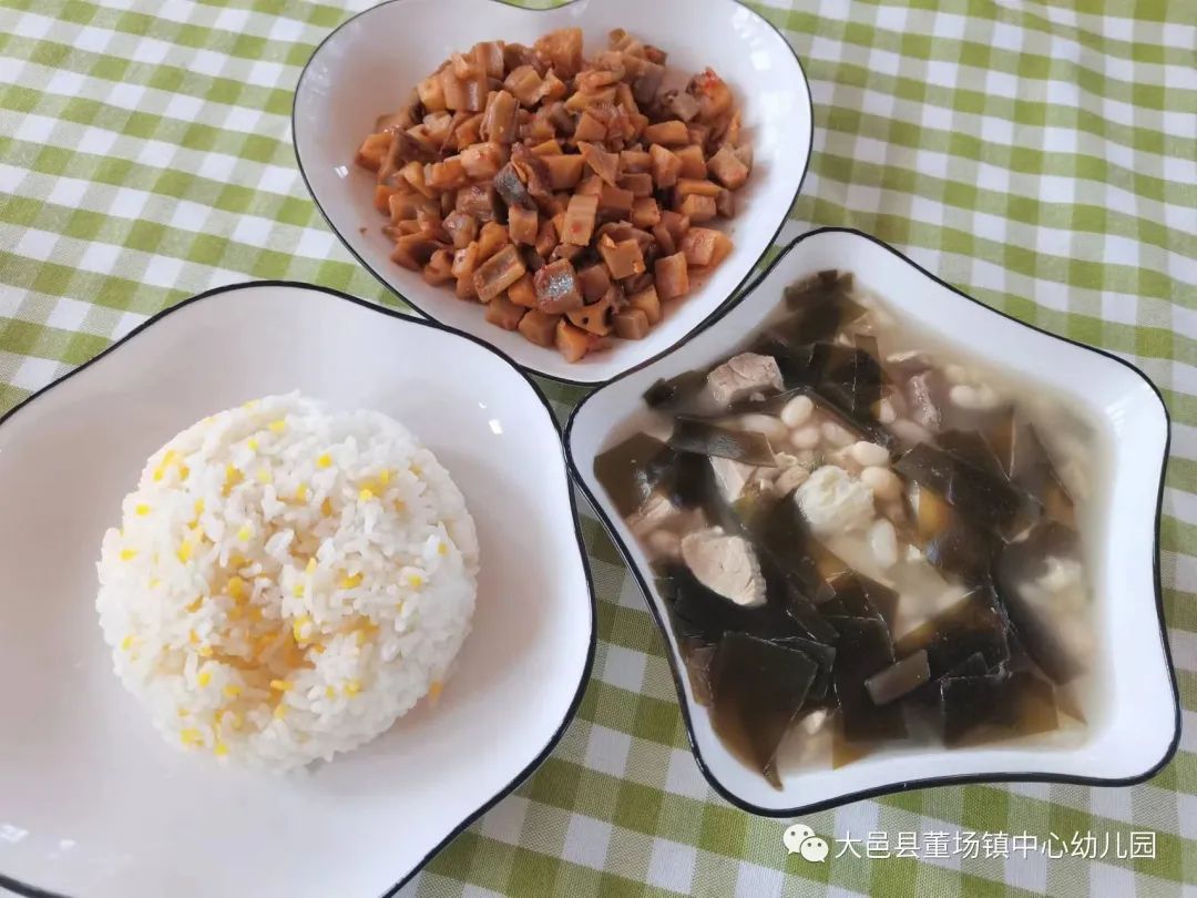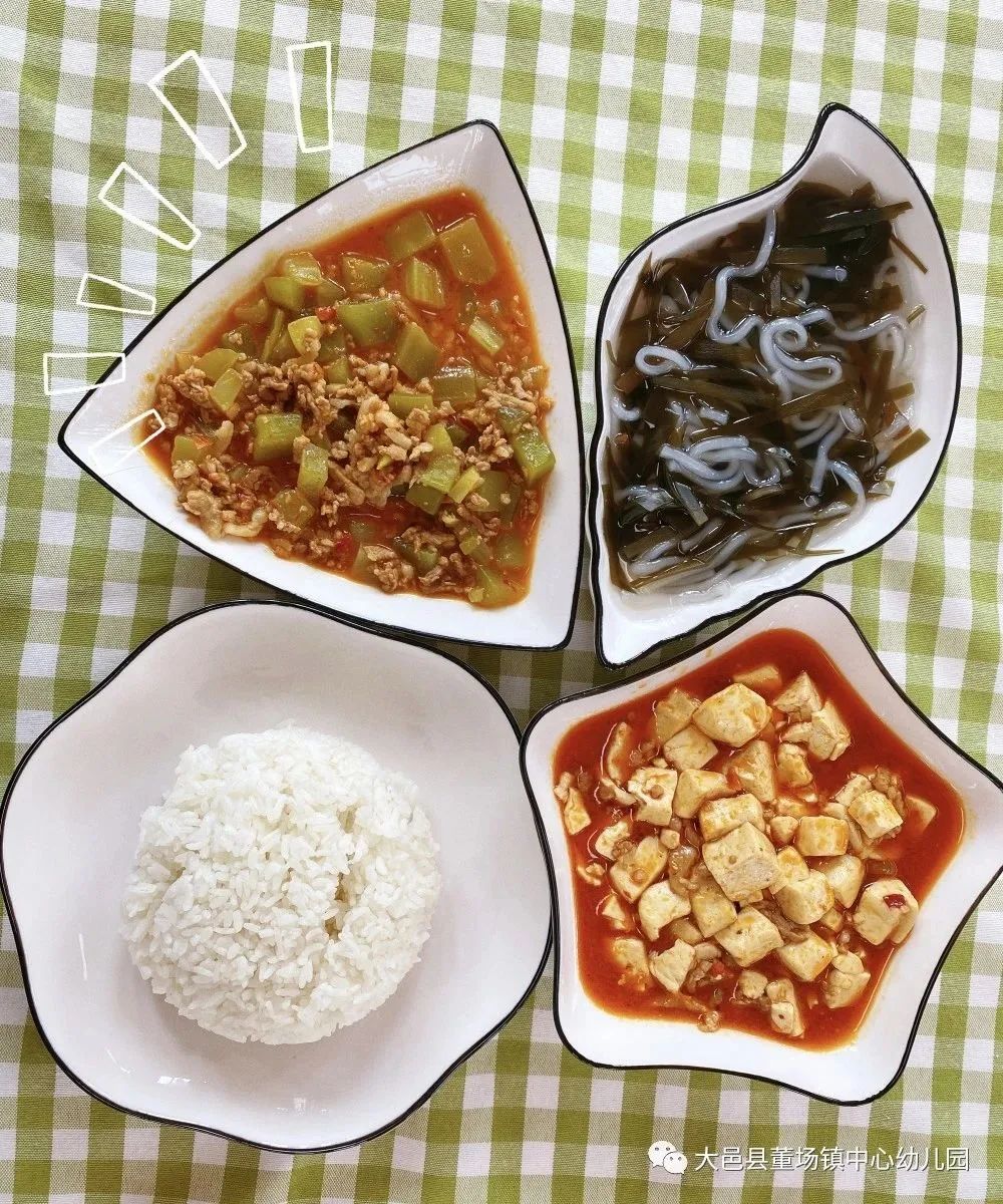 珍珠米饭 宫保肉丁 麻婆豆腐 三鲜海带汤