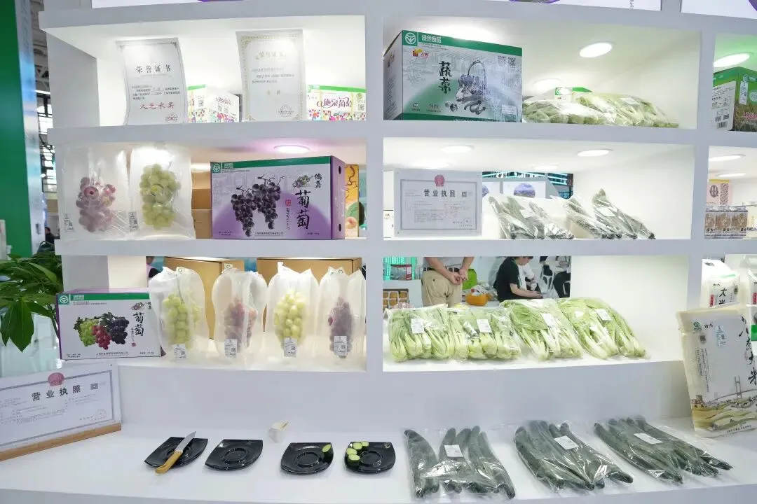 本次闵行展团,可谓精兵强将,阵容不凡——全区遴选了谷杰、群立、亮苗、正义、侨嘉、丰伟6家标杆企业,带来了大米、葡萄、青菜、黄瓜、杭白菜等多款获得绿色认证的“拳头产品”,每款产品都暗藏 “绿色匠心”。