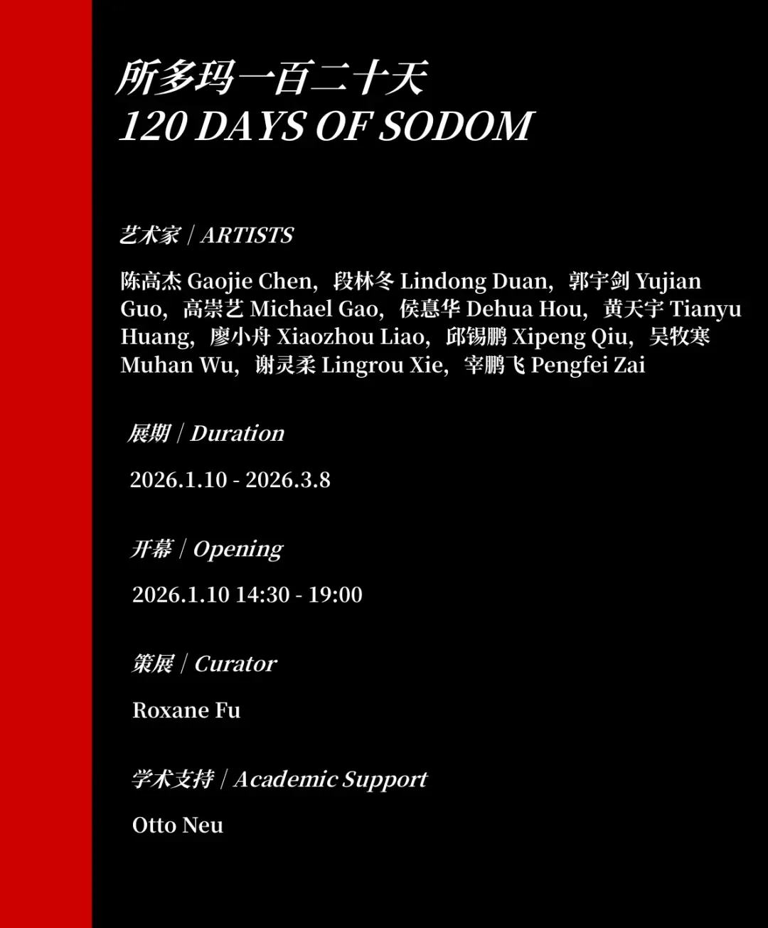 2026 “所多玛一百二十天”,Nan Ke Gallery