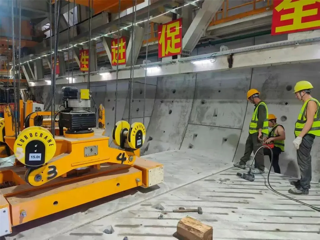 面对挑战,项目团队采用“模块化运输车+自动同步顶升系统”,包括由4个动力单元、64轴模块车及8套250吨自动叠加式同步顶升系统构成的2000吨级模块化运输装备,搭配毫米级液压调节技术。