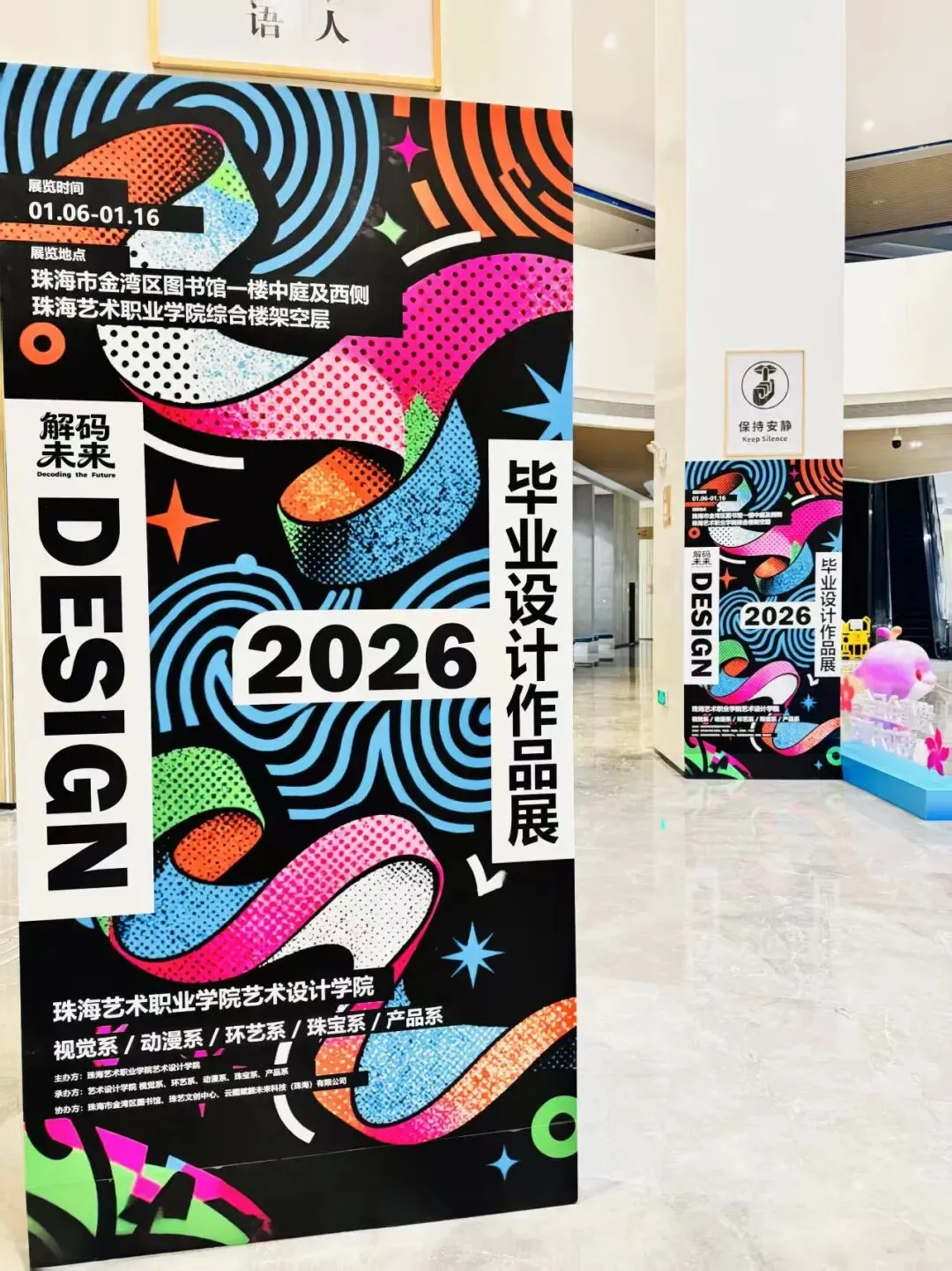 从一张设计草图的诞生,到一场展览的视觉落地;从一次赛事的作品创作,到一篇推文的视觉美化,视觉工作室始终以创意为笔、设计为墨,在视觉传达的领域里不断探索。本次“解码未来”毕设展的视觉呈现,只是我们众多实践中的一个缩影,未来,我们还将继续用设计解码更多可能,让视觉的力量成为学院创意表达的硬核支撑。