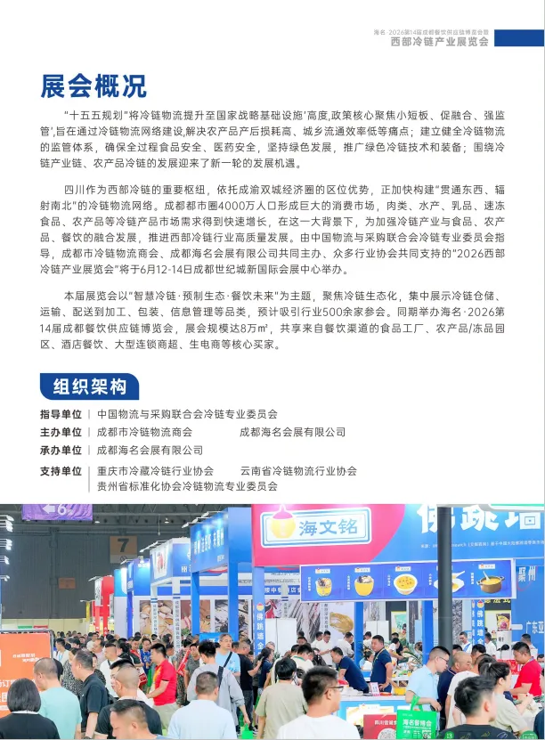 2026西部冷链产业展览会/海名第14届成都餐博会/四川火锅产业博览会丨6月12日-14日丨成都世纪城新国际会展中心
