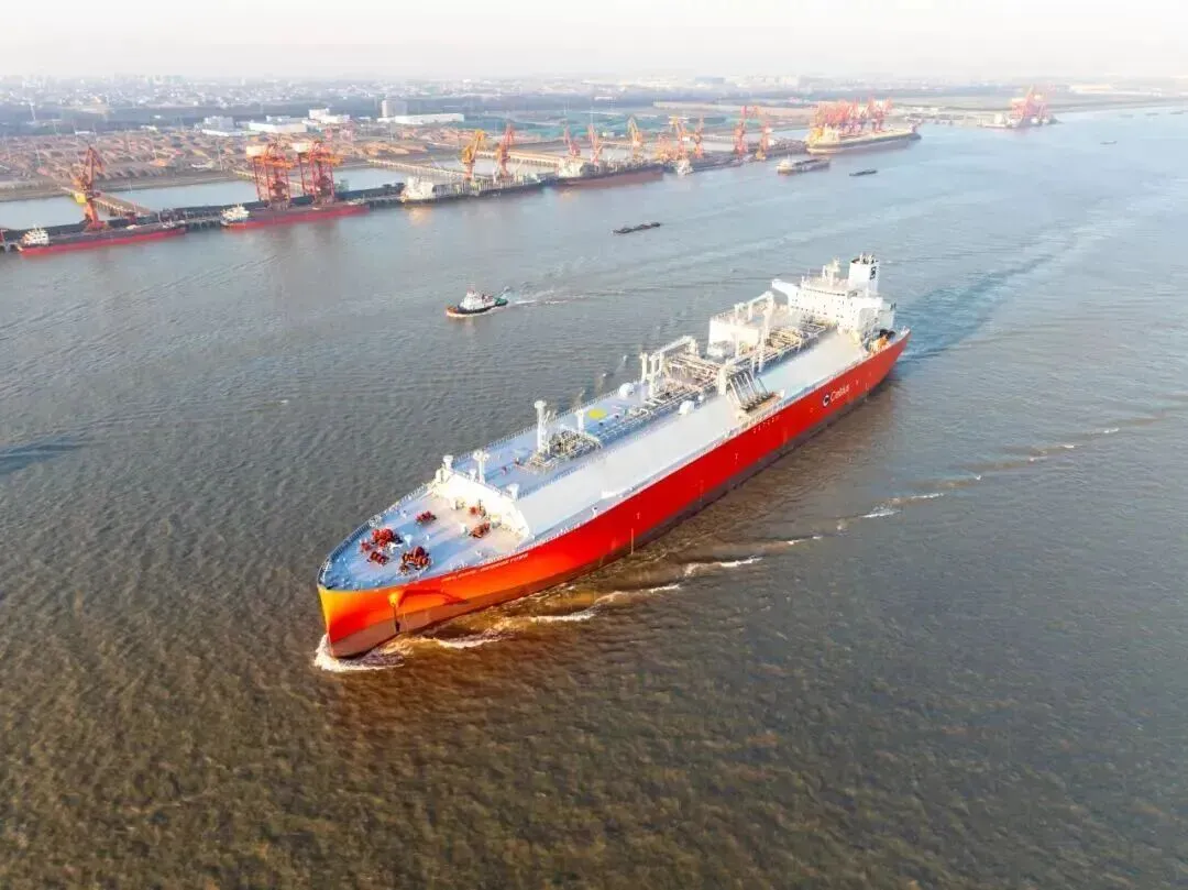 2025年11月,招商船舶建造的首制18万立方米LNG运输船离开码头出海试航