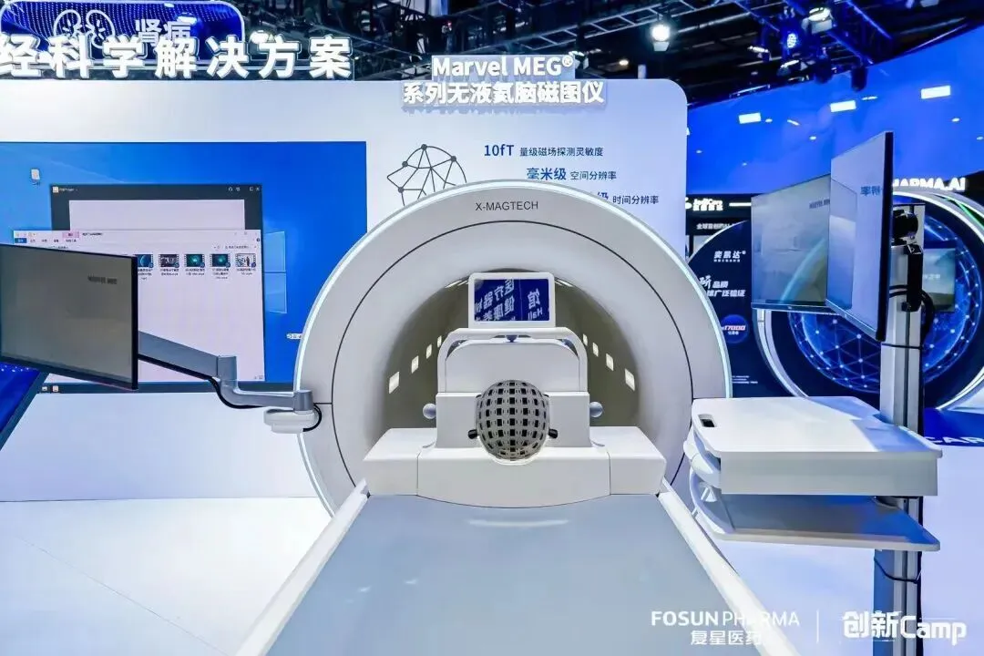 作为本次展出的亮点之一,Marvel MEG®无液氦脑磁图仪是全球首款实现128通道无液氦运行的脑磁图系统,通过捕捉大脑神经元活动产生的微弱磁场,实现对脑功能的精准成像,为临床诊疗提供关键依据。与传统设备相比,Marvel MEG®摆脱了对屏蔽房和液氦的依赖,具备安全、无创、精准、高效等优势,显著提升了脑磁图技术的临床可及性。