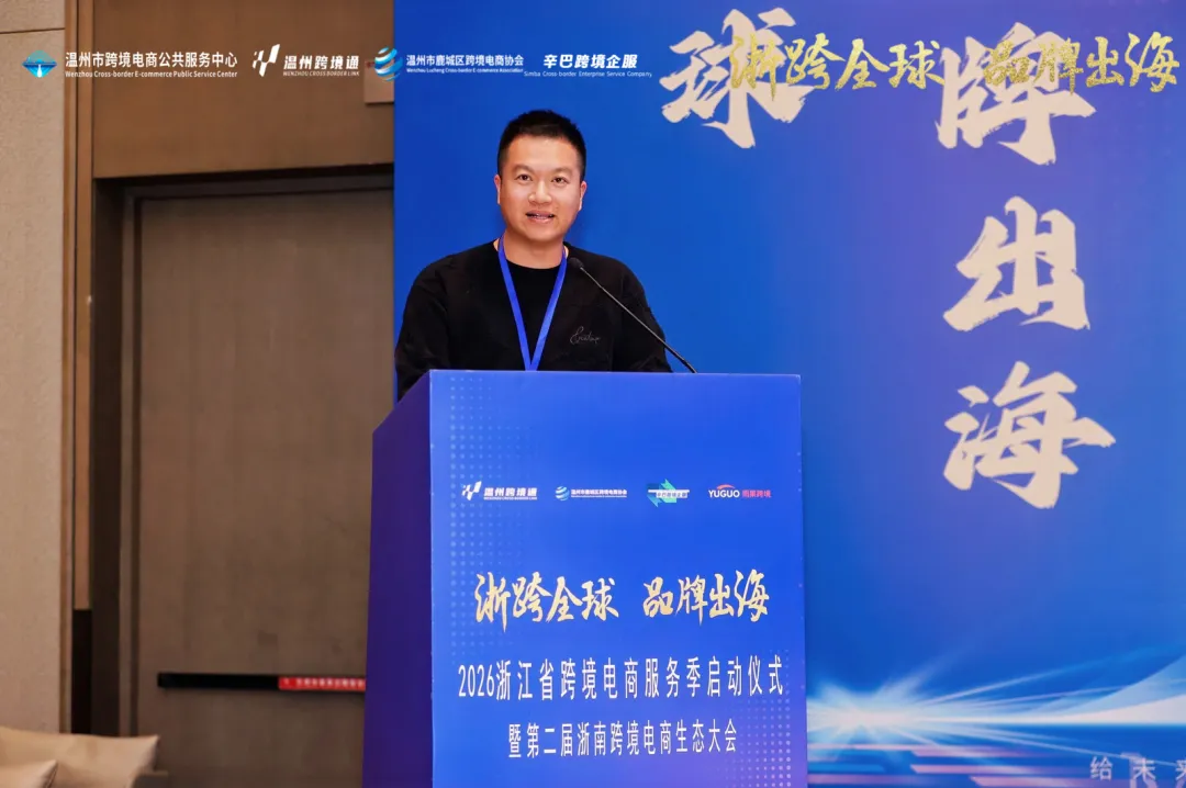 1月9日,由浙江省商务厅、温州市人民政府联合主办的“浙跨全球 品牌出海”2026浙江省跨境电商服务季活动启动仪式暨第二届浙南跨境电商生态大会在温州举办。省商务厅党组成员、副厅长陈志成,温州市人民政府副市长陈宽,鹿城区委副书记、代区长何占宇出席活动并致辞。温州市、金华市、台州市、丽水市等市县商务部门、商协会、跨境电商产业园、大型平台企业、卖家、服务商等1000多人出席活动。