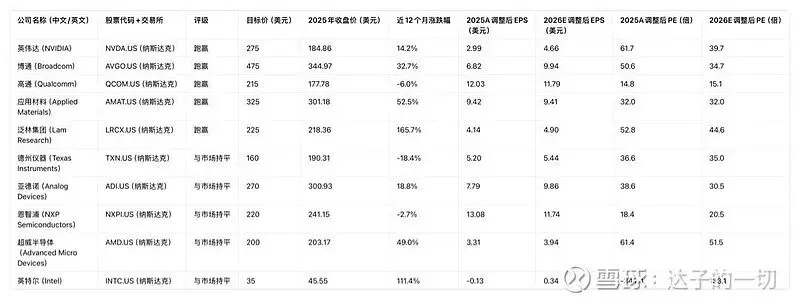 3.细分机会:AI算力(NVDA/AVGO)、半导体设备(AMAT/LRCX)、高性价比龙头(QCOM)为三大核心主线,模拟芯片与传统CPU赛道需谨慎;