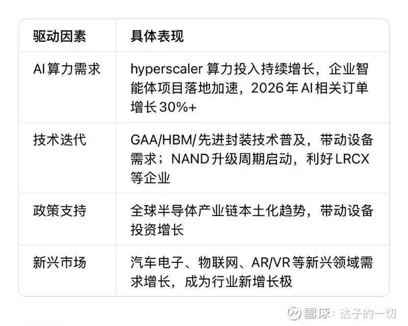 5.长期看“国产替代”的隐形机会:研报主要聚焦美国企业,但国内半导体产业链的机会同样值得关注。随着全球供应链重构,国内设备、材料企业在部分细分领域已经实现突破,后续可以重点跟踪“技术突破+客户验证”的标的,这可能是未来3-5年半导体行业最大的超额收益来源。