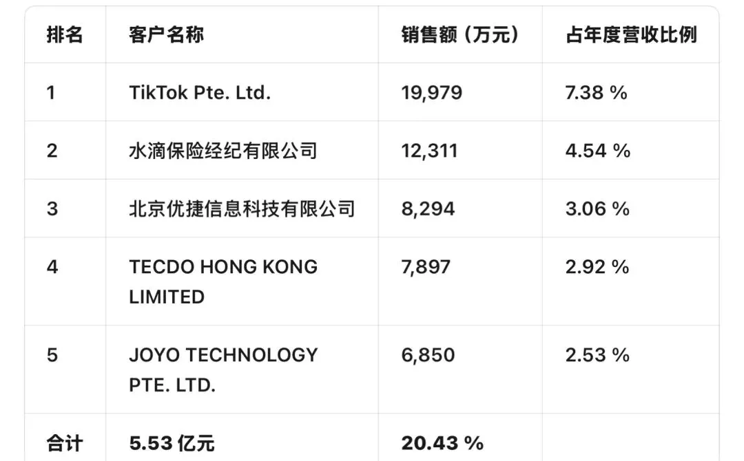 注:上述客户主要对应数字传播(出海广告代理)业务板块,管理软件业务客户集中度更低 。