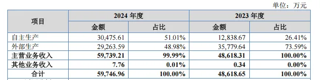 据了解,当下功效护肤赛道仍处于强劲增长状态。中信证券发布的研报显示,预计2026年,中国功能性护肤品销售规模有望达到2298亿元,其中,皮肤学级护肤品的终端规模可达442亿元。可以看到的是,除了良好的业绩表现外,绽妍生物冲击北交所的底气还来自于其对皮肤健康领域的深耕。据公开转让说明书披露,绽妍生物在基础研究领域与产品开发并重,建设了合成生物活性功能蛋白材料、皮肤学级护肤品和生物医用材料三大研发与技术转化平台,从而打通了产业上下游,实现从上游生物活性原料到下游医疗器械、皮肤学级护肤品等终端产品的全链路研发覆盖。同时,基于企业的成立背景,绽妍生物的另一大优势则是,与皮肤科医生建立了深度链接。公开资料显示,绽妍品牌成立于2015年,是一家从公立医院走出来的皮肤学级护肤品牌,该品牌主张通过医研共创和生物科技为皮肤问题提供精准高效的解决方案,其第一款上市产品就是皮肤修复敷料械字号蓝膜医用敷料,即是其首款爆款单品。毫无疑问,功效护肤赛道的竞争壁垒离不开对成分的技术专研与突破。譬如,青刺果之于贝泰妮,光甘草定之于谷雨,重组胶原蛋白之于巨子生物等,绽妍生物则是在重组贻贝粘蛋白领域建立了较强的竞争壁垒。据绽妍生物介绍,公司是国内首家实现重组贻贝粘蛋白规模化生产的企业,荣获沙利文“中国重组贻贝粘蛋白护肤品领导者”市场地位认证,并牵头起草了首个《敷料用重组贻贝粘蛋白》团体标准。其成功开发出高稳定性、高活性、高纯度、高含量、富含多巴的重组贻贝粘蛋白,解决了传统贻贝粘蛋白来源受限、生产周期长和价格昂贵的问题,使其成为公司的王牌专研成分。值得一提的是,绽妍生物还在2025年初,备案化妆品新原料“SR-贻贝多肽-3”。据了解,绽妍生物所研发的重组贻贝粘蛋白相关成分,已应用到终端医疗器械和皮肤学级护肤品产品之中,如重组贻贝粘蛋白水凝胶敷料、绽妍三重蛋白系列化妆品(绽妍JUYOU三重蛋白安润舒缓保湿水、三重蛋白安润修护霜等)均添加了贻贝提取物。此外,绽妍生物还在持续推进多项在研项目,包括胶原蛋白、类贻贝粘蛋白等生物活性原料项目,以及绽妍舒敏系列、透明质酸无菌敷料等专业皮肤护理产品项目。2023年和2024年,绽妍生物的研发费用分别为1503.81万元和1372.77万元。由此可见,其对重组贻贝粘蛋白及化妆品领域发展前景的持续看好与战略布局。在生产方面,目前,绽妍生物采用自主生产与外部生产并行的双轨生产模式。其中,外部生产涵盖化妆品代工及医疗器械采购两种形式。据公开转让说明书披露,2023年,其自主生产占比仅为26.41%,远低于外部生产的73.59%;而2024年自主生产比例快速提升至51.03%,已超过了外部生产的占比。▍截自绽妍生物公开转让说明书
