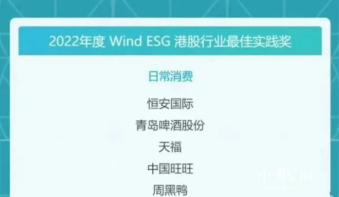 恒安国际入选Wind ESG最佳实践上市公司榜单