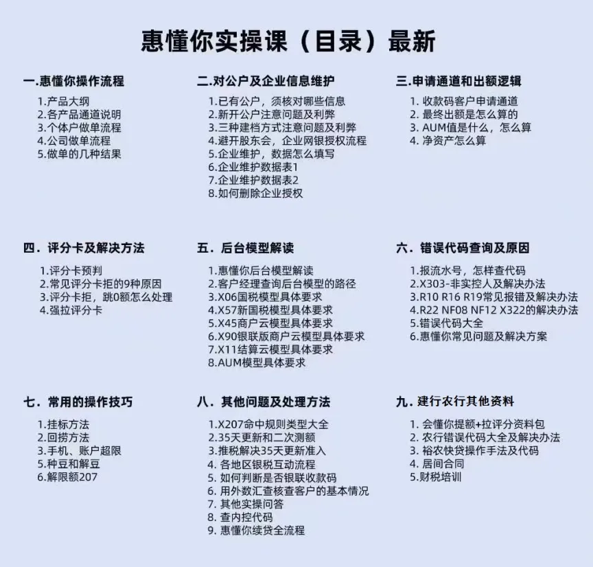 陪跑,提额,回捞,解代码,拉评分,跑净资产
