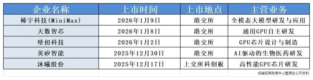 2026年1月9日,稀宇科技(MiniMax)在港交所闪亮登场,把上海AI产业的热度彻底拉满。往回扒拉时间线,早在2025年12月17日,沐曦股份就率先在科创板敲响锣鼓,紧接着英矽智能、壁仞科技、天数智芯轮番上阵,在港交所和科创板接连炸场。更猛的是,“上海GPU四小龙”里的燧原科技,也已完成IPO辅导。