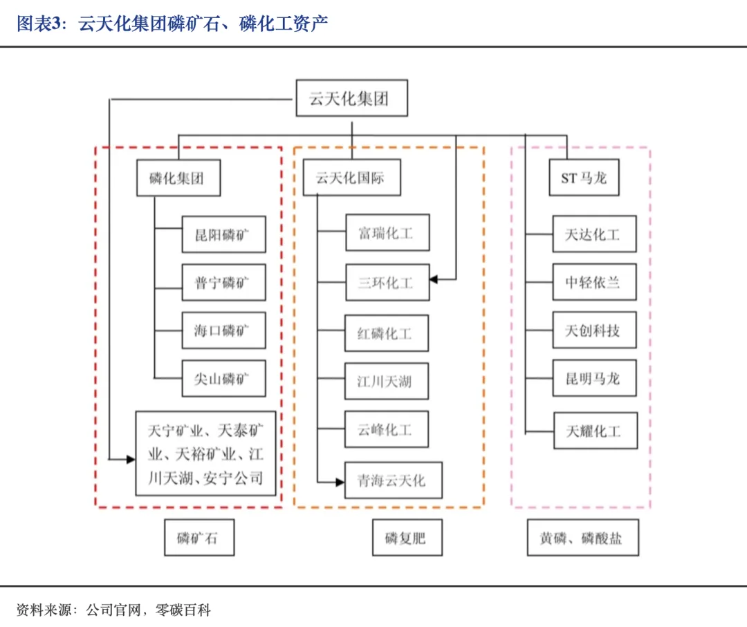 磷化集团:云天化集团旗下,最大的国有现代化露天磷矿企业,拥有4座矿山及年产1,300万吨的磷矿采选能力。